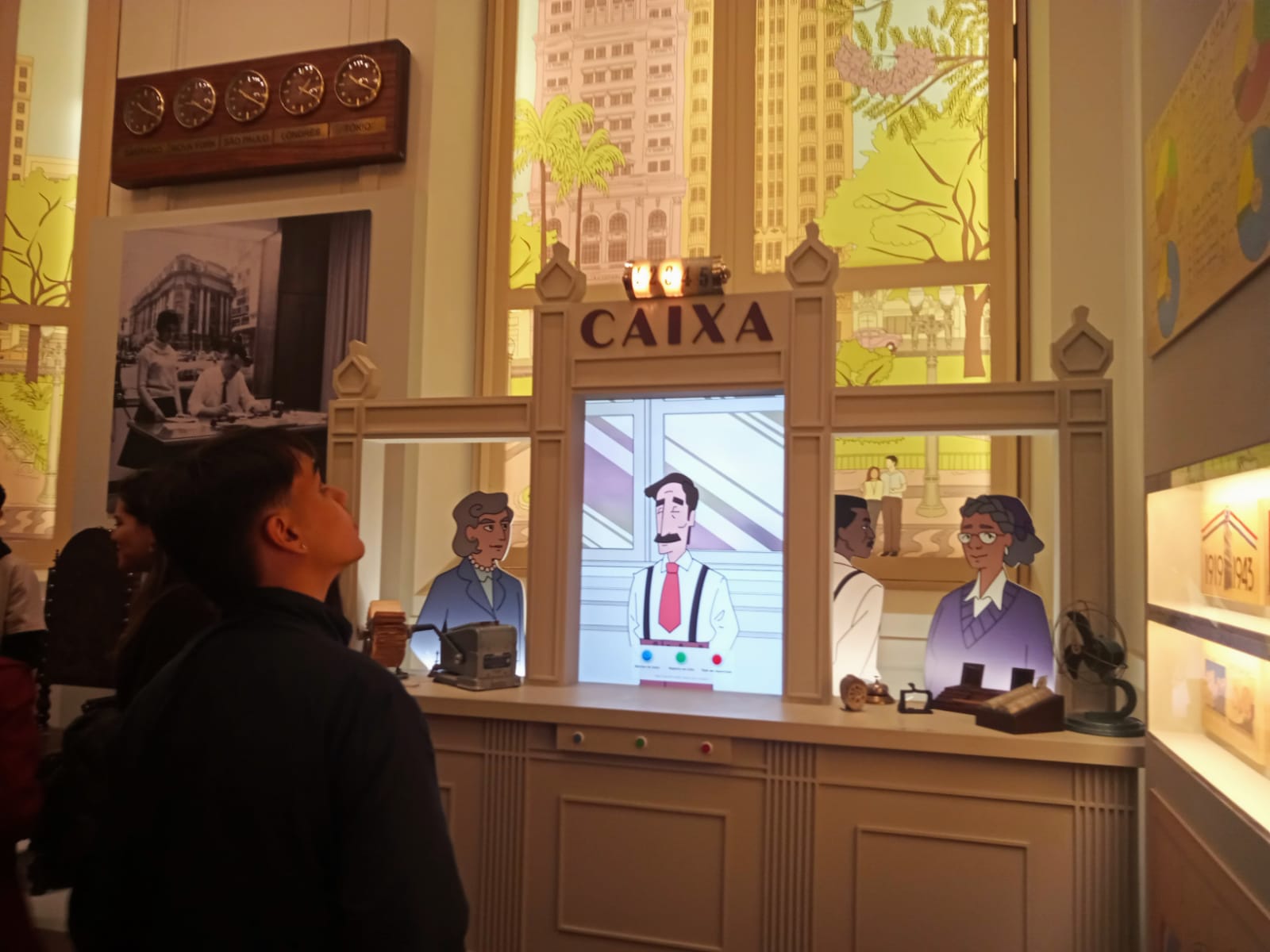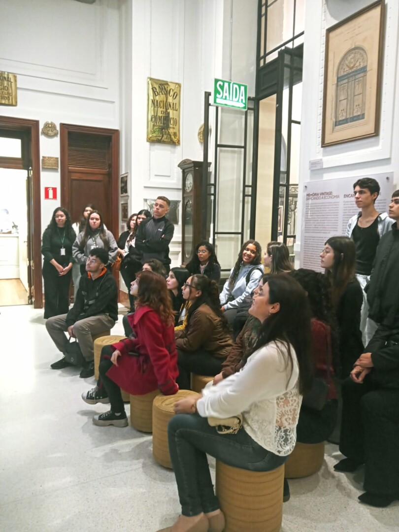 Finalizando a saída de campo, a turma participou de uma exposição no Farol Santander – “Memória Vintage: Bancando a Economia”. A atividade proporcionou um passeio imersivo, interativo e educativo sobre o funcionamento do sistema financeiro, no passado e no presente.