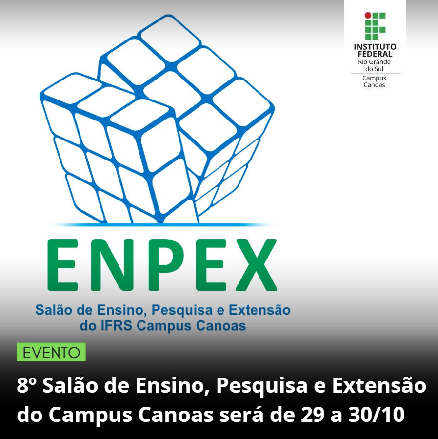 Nos dias 29, 30 e 31 de outubro ocorre, a 8ª edição do Salão de Ensino, Pesquisa e Extensão (Enpex) no Campus Canoas. Neste ano, a temática do evento será “15 anos do Campus Canoas: trajetórias de inclusão, diversidade, sustentabilidade e resiliência”.
