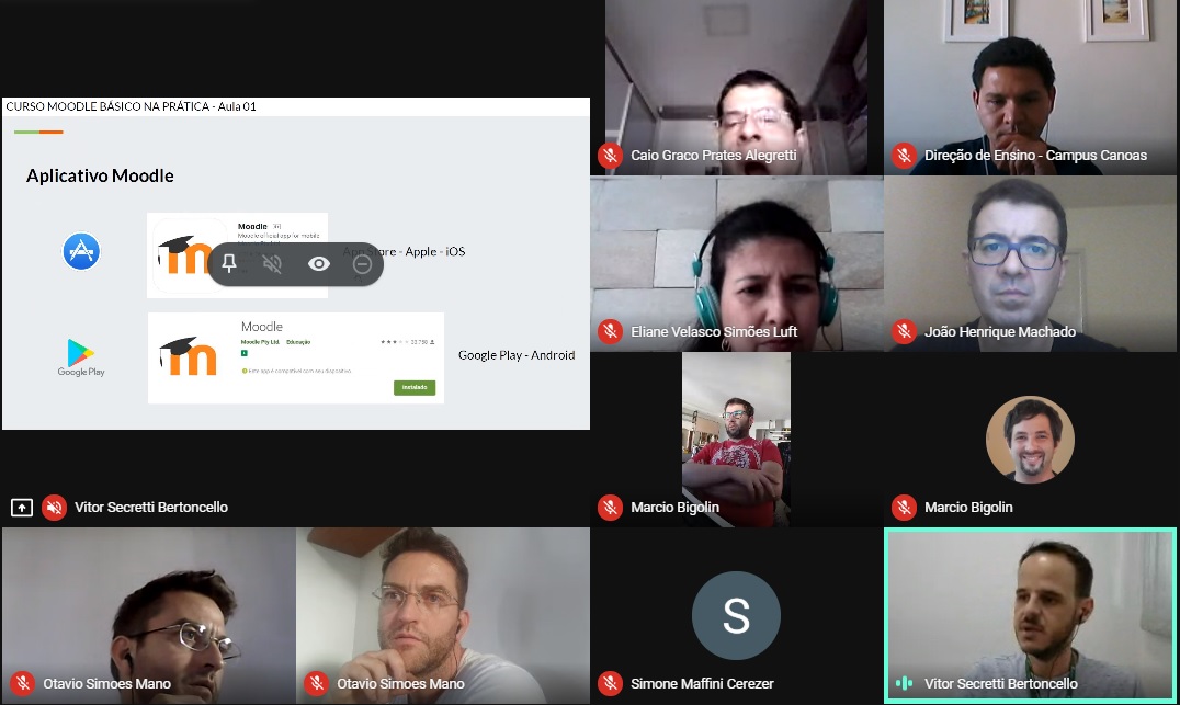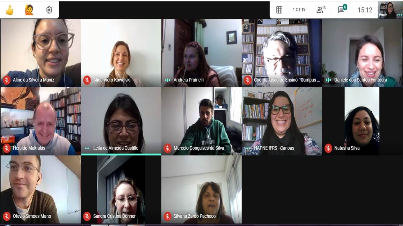 Estudantes, professores e membros da equipe diretiva do Campus Canoas participaram da reunião online. (reprodução ao lado)