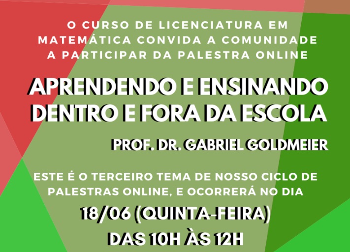 » Reflexões sobre o ensino é tema de encontro online do Ciclo de Palestras do Curso de Licenciatura em Matemática