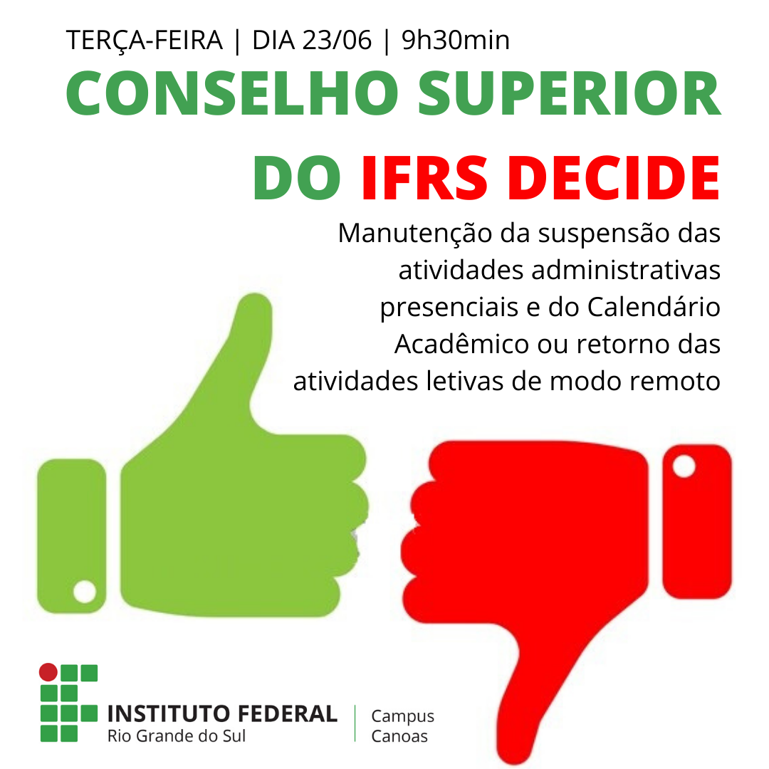 De forma diferenciada, pela primeira vez desde a criação do Instituto Federal do Rio Grande do Sul, o Conselho Superior (Consup), órgão máximo da instituição, teve sua reunião ordinária online. Os conselheiros representantes do Campus Canoas participaram da atividade que teve transmissão em tempo real e gravada (acesse: primeira parte – segunda parte).
