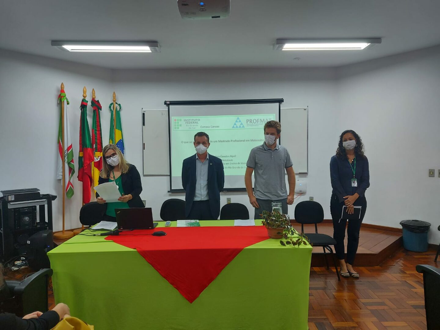 O evento contou com a presença do Pró-reitor de Pesquisa, Pós-graduação e Inovação do Instituto Federal do Rio Grande do Sul, Eduardo Girotto, da diretora-geral do Campus Canoas do IFRS, Patrícia Nogueira Hübler, da Coordenadora de Pesquisa, Pós-graduação e Inovação do Campus Canoas, Cimara Valim de Melo e do Coordenador do PROFMAT, Nicolau Matiel Lunardi Diehl.