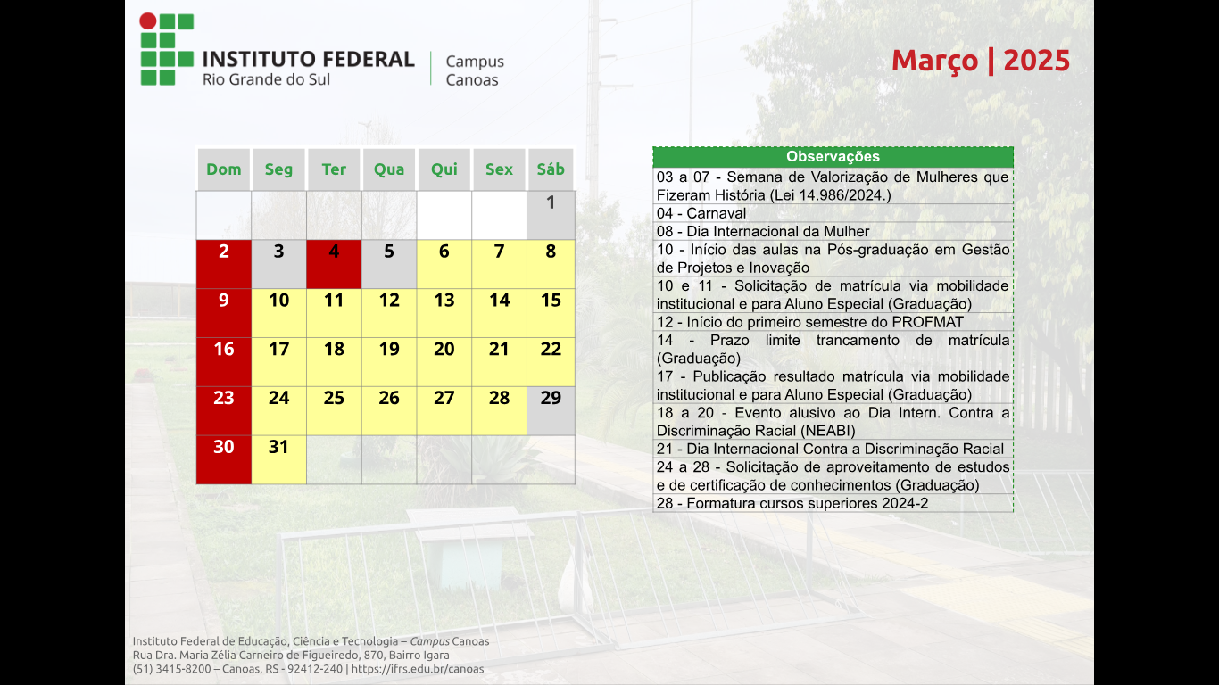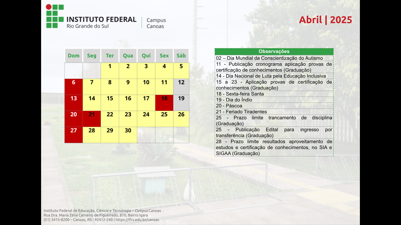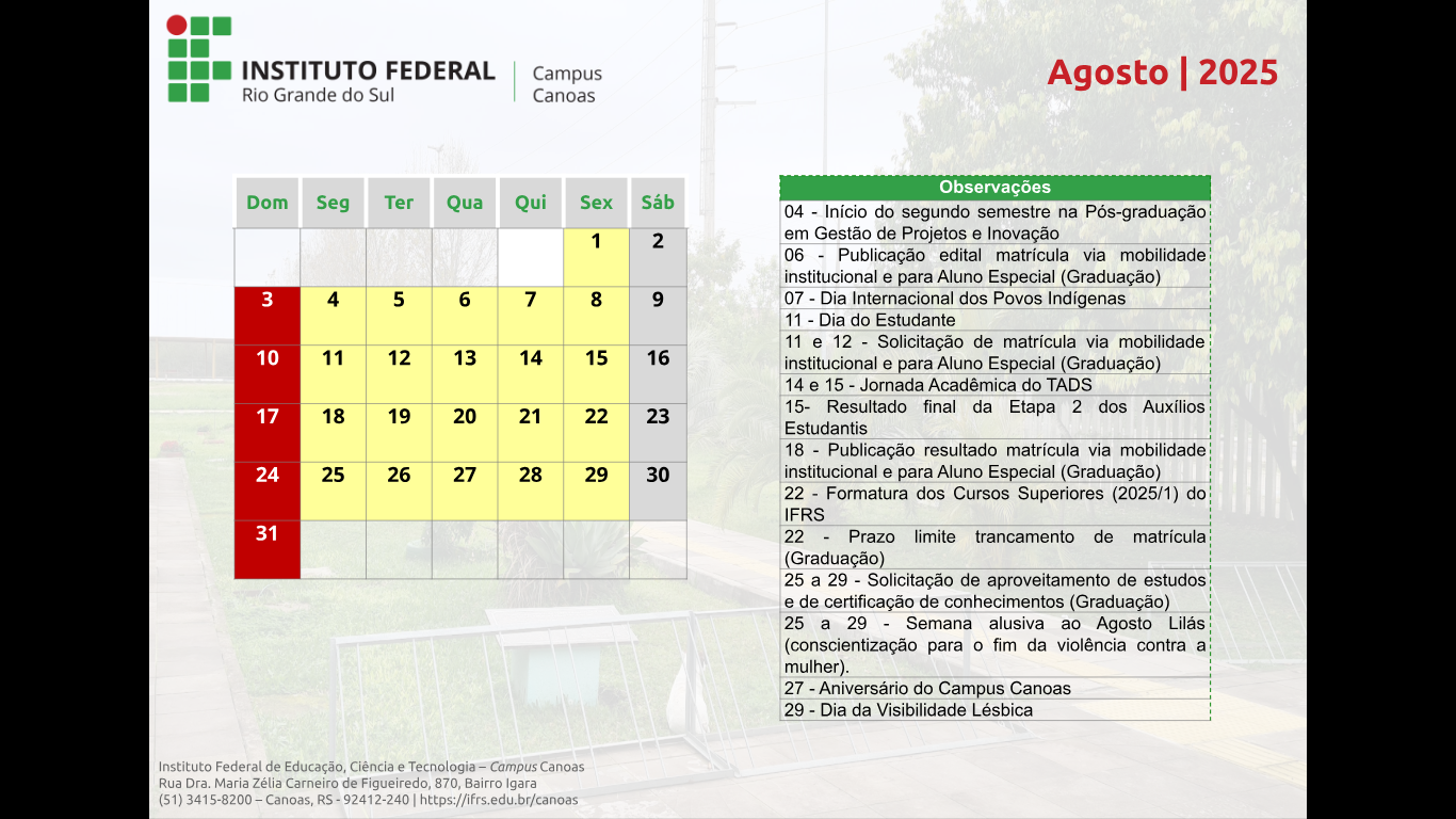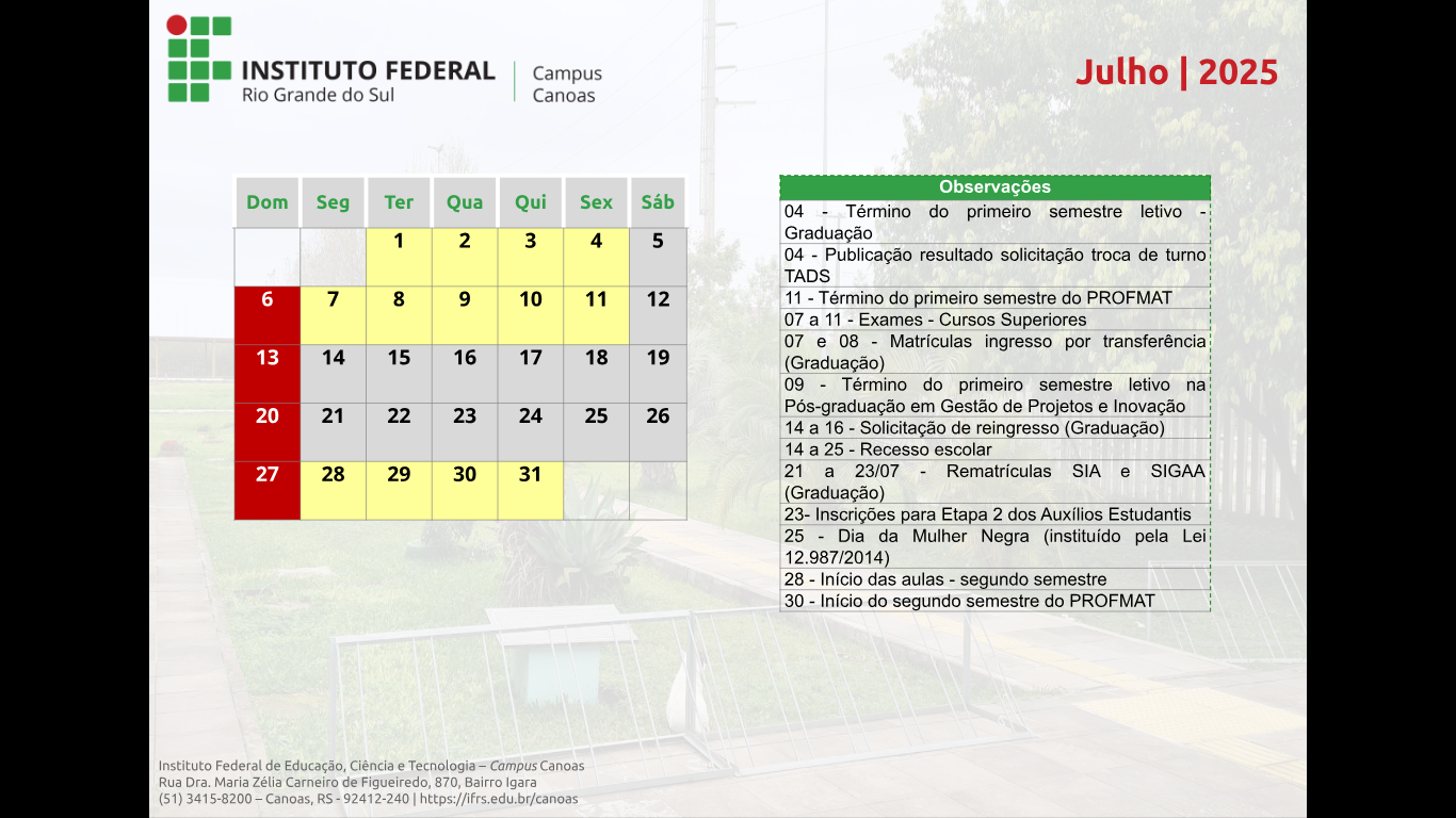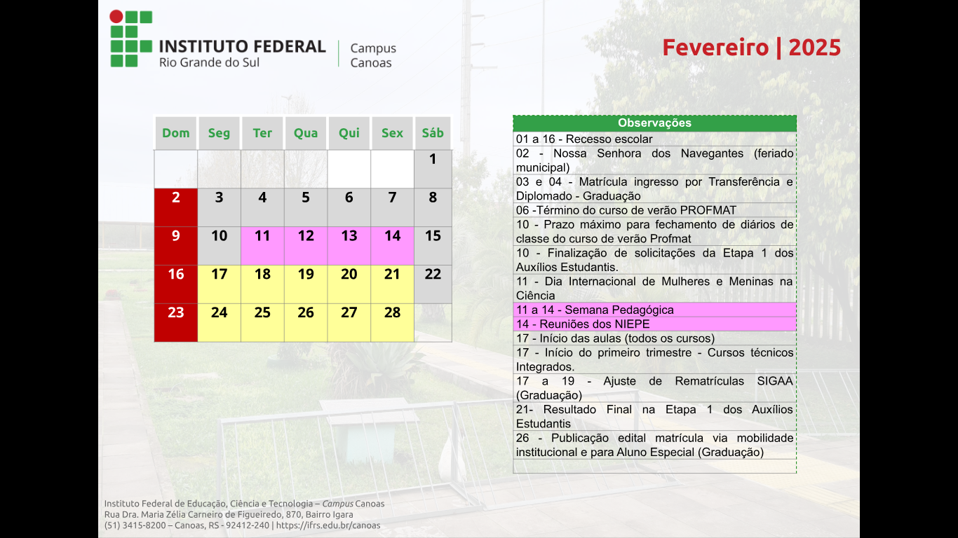 Calendário Acadêmico 2025 Compartilhar conteúdo: Facebook Twitter LinkedIn Pinterest WhatsApp Última atualização em 30/01/2025