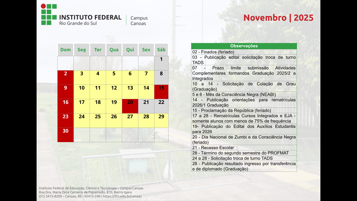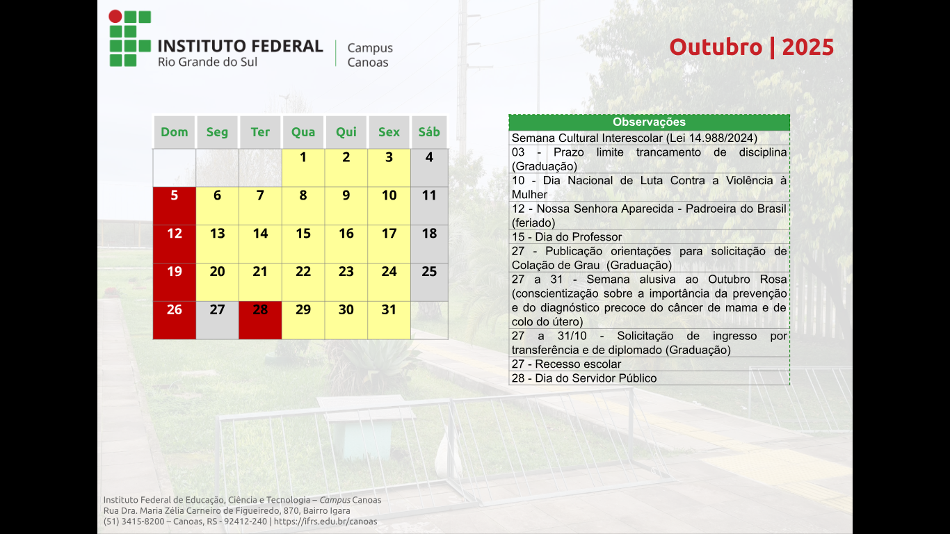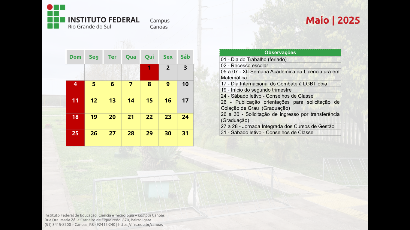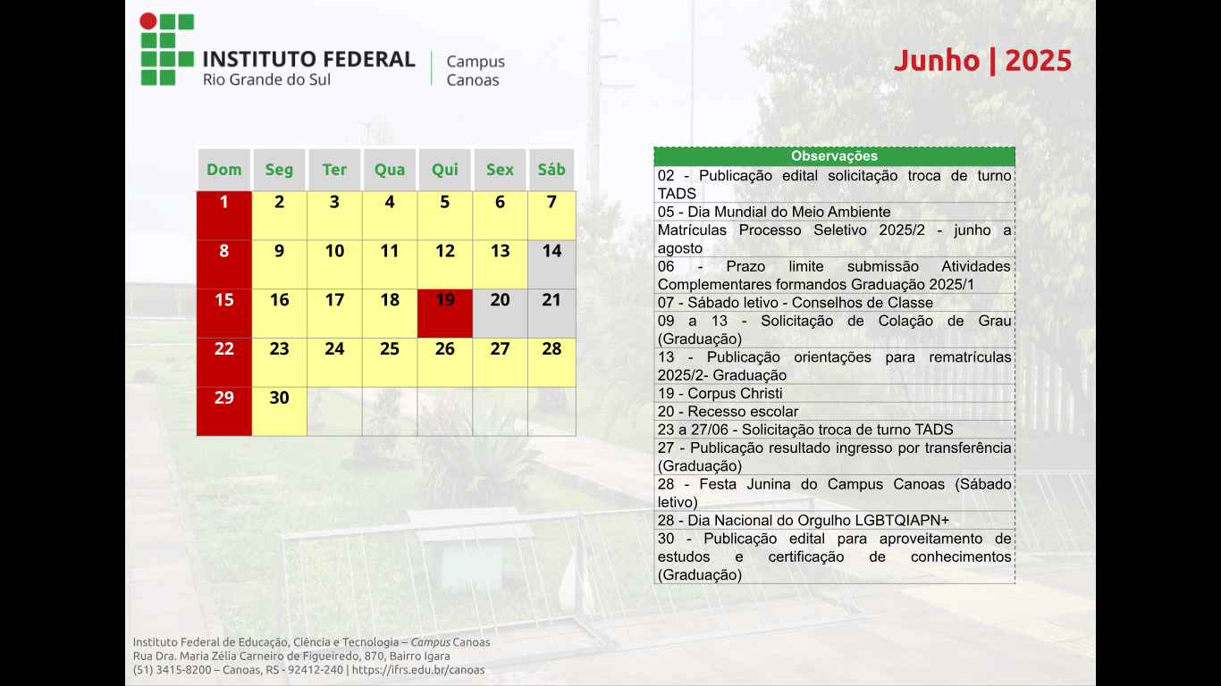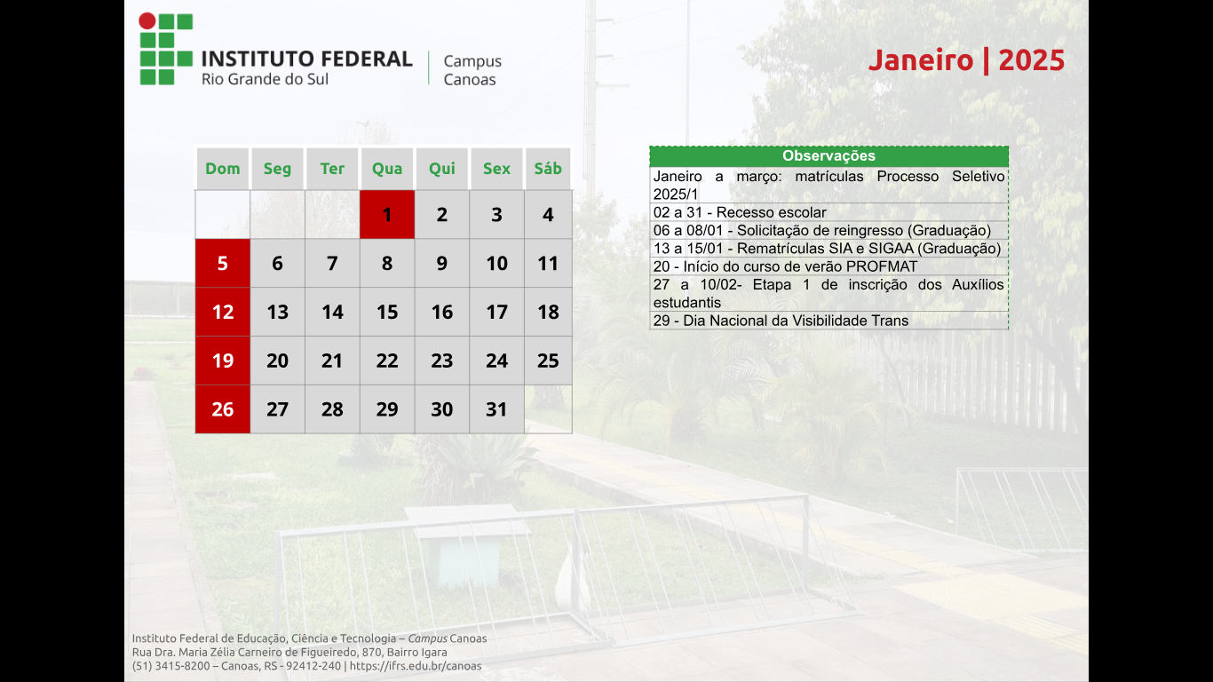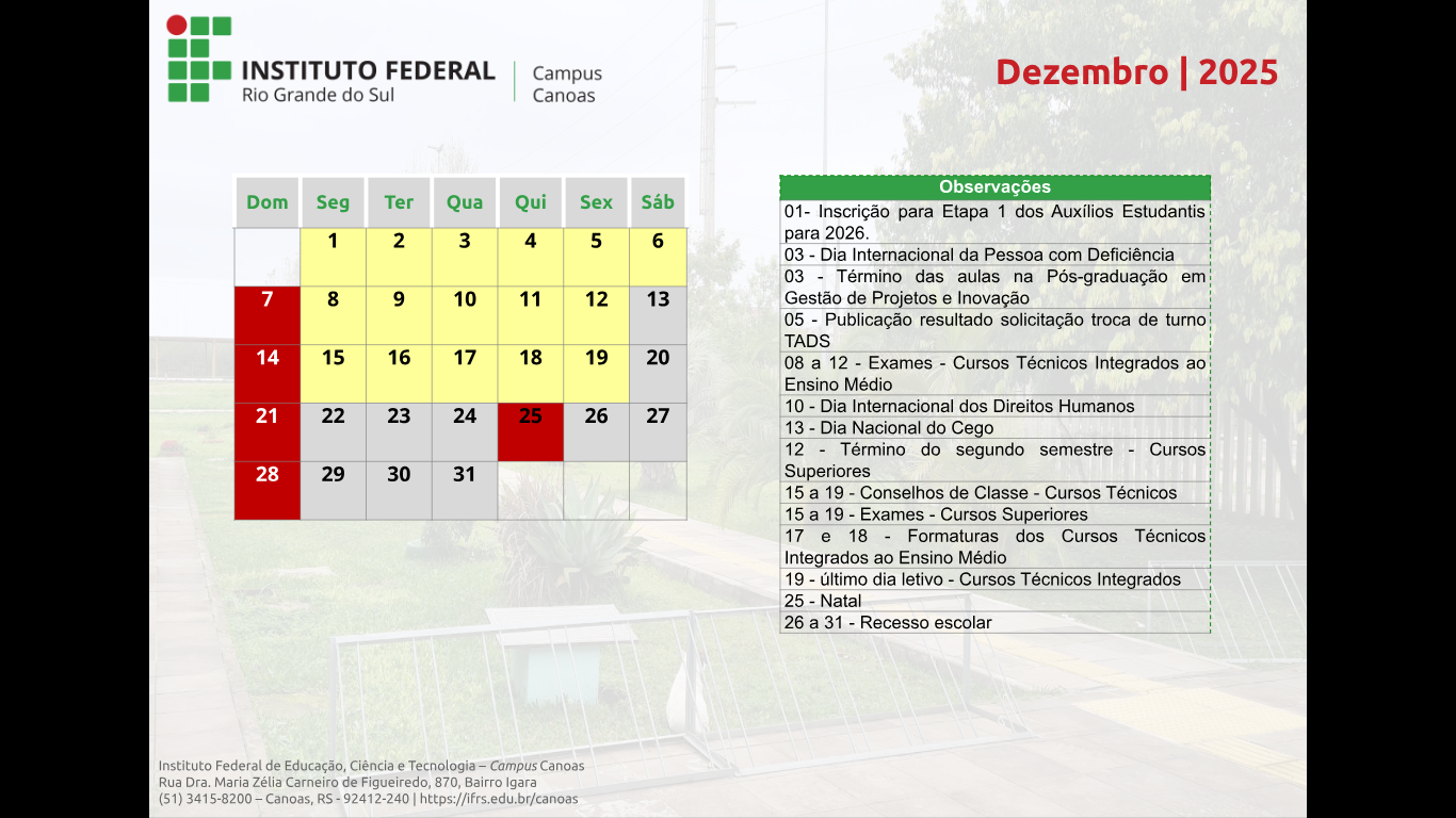 Calendário Acadêmico 2025 Compartilhar conteúdo: Facebook Twitter LinkedIn Pinterest WhatsApp Última atualização em 30/01/2025