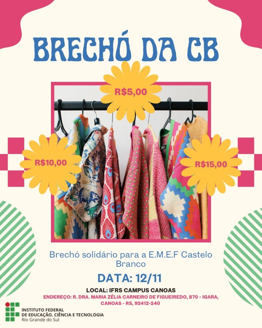 O brechó será nas dependências do Campus Canoas e acontecerá em 12 de novembro, das 10h às 12h, no saguão do Bloco A.