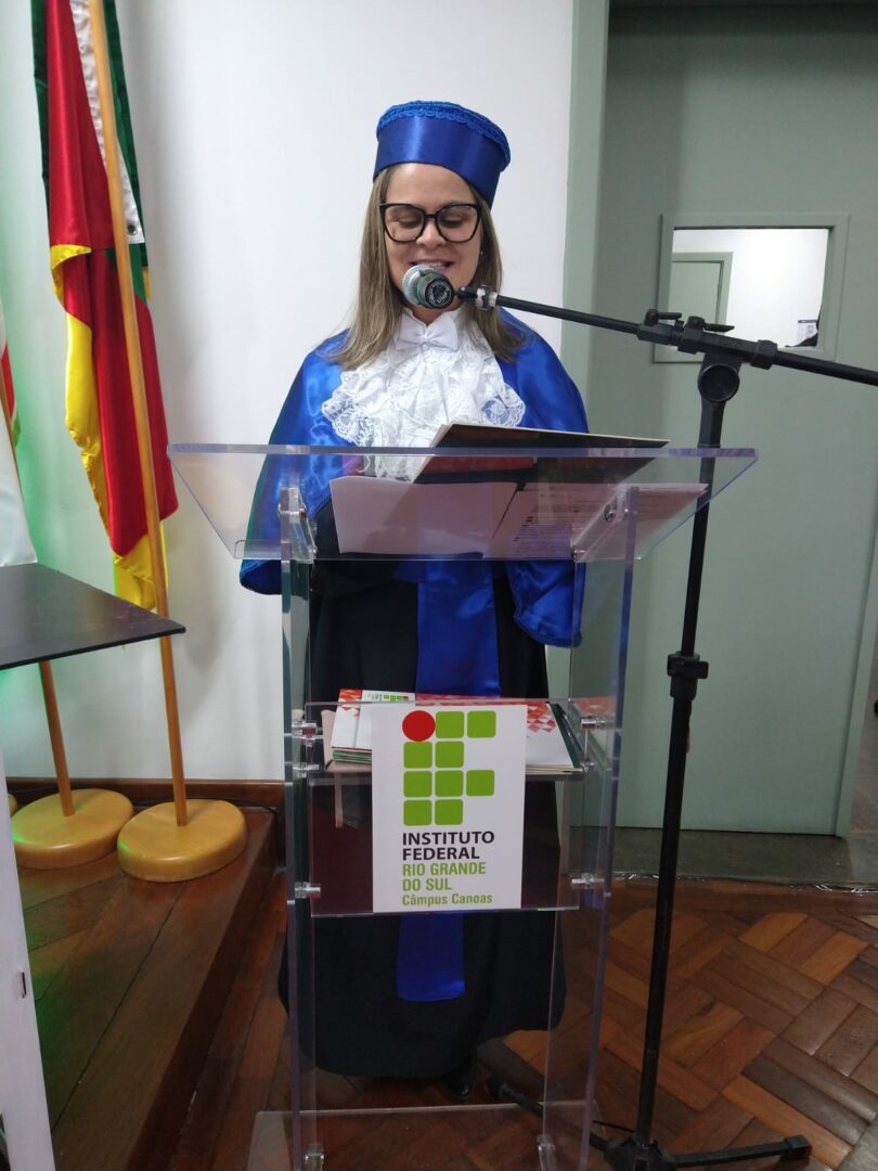 Na sexta-feira, 25 de agosto, ocorreu, nas dependências do Campus Canoas, a sessão solene de colação de grau dos Cursos Superiores de Tecnologia em Automação Industrial, Tecnologia em Logística e Matemática – Licenciatura. A servidora Angélica Rodrigues Machado Costa foi a mestre de cerimônia.
