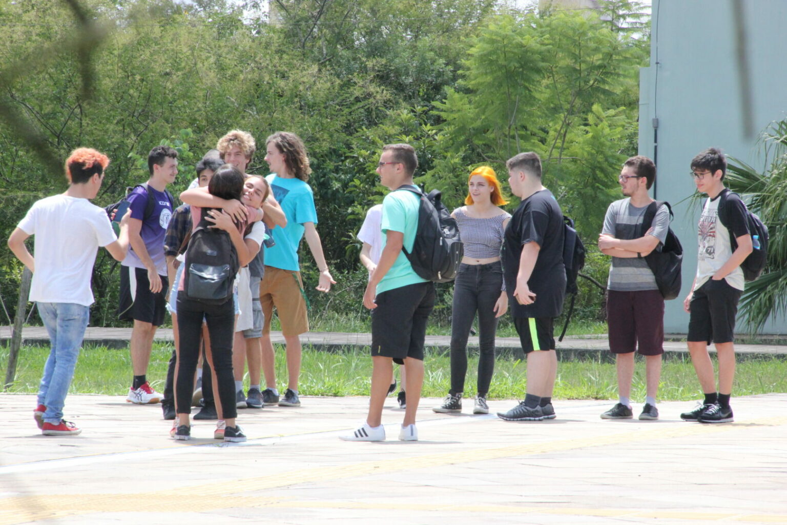 Da mesma forma que é bom se aproximar, muitas vezes, melhor é ficar de longe. E mais uma vez, não importa o equipamento (mas se tiver um zoom… e se souber usar…). Estar afastado garante privacidade e muita, mas muita naturalidade para sua foto. Mas também é preciso muita sorte e uma boa dose de paciência. Fato é que não se deve esperar muito desse tipo de foto, mas é melhor do que ficar de bobeira lá no canto do evento. De repente está rolando o momento que vai dar a imagem da capa pois reflete justamente o clima do acontecimento. A foto aí de baixo é da volta às aulas de 2019.