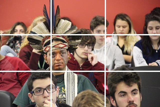 - Coloquei esse exemplo de propósito para mostrar que o motivo não é preciso estar exatamente no vértice. Nesse caso, o indígena chamava tanta a atenção na imagem que deixei o cocar no vértice e dei uma espichada no terço, nesse caso, também usando Fibonacci, que veremos a seguir…