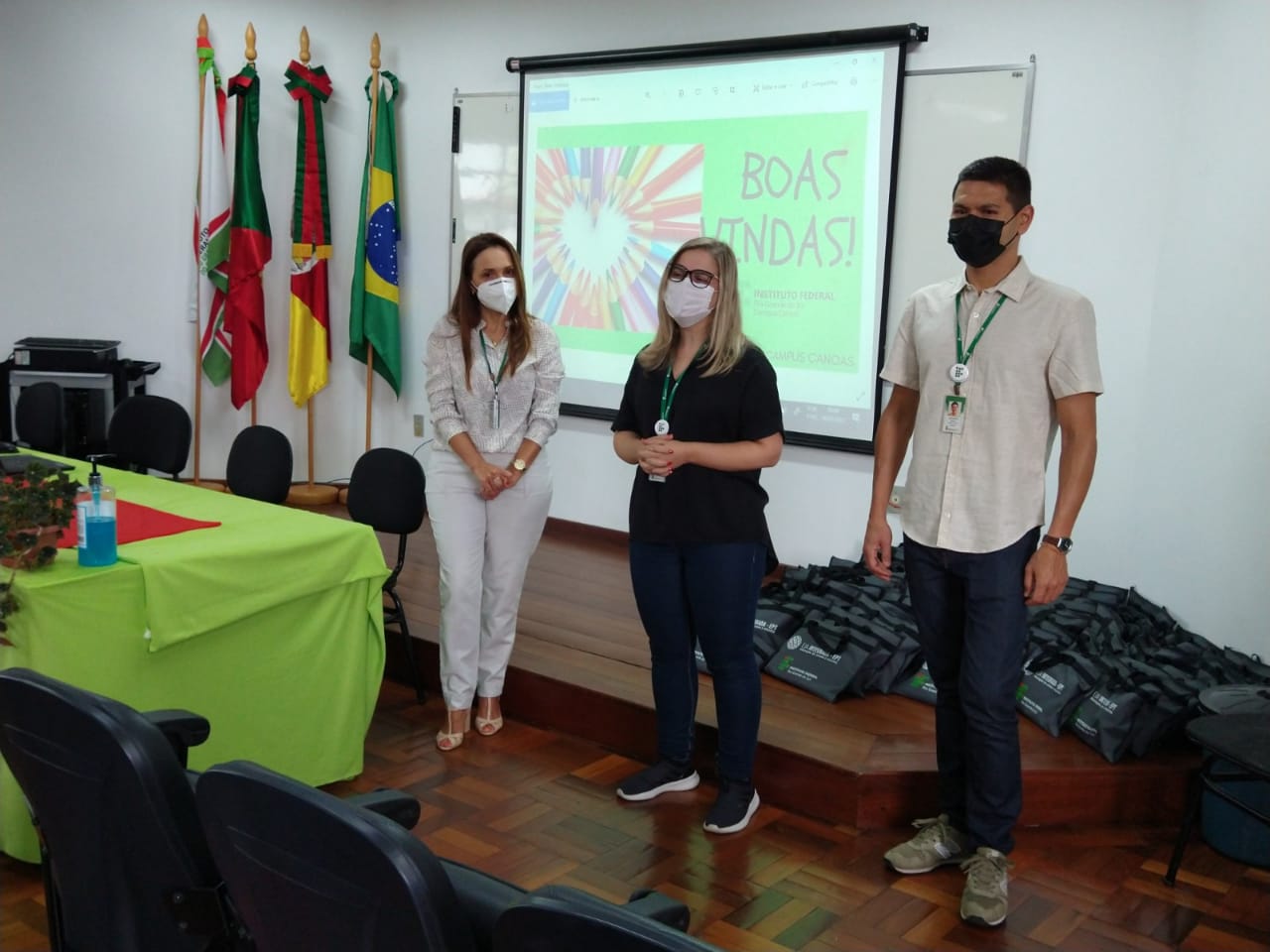 Logo depois, a diretora-geral, Patrícia Nogueira Hübler, o diretor de ensino, Alexandre Tadachi, juntamente à ccordenadora do EJA no município de Canoas, Sandra Frozza, deram as boas-vindas aos ingressantes.