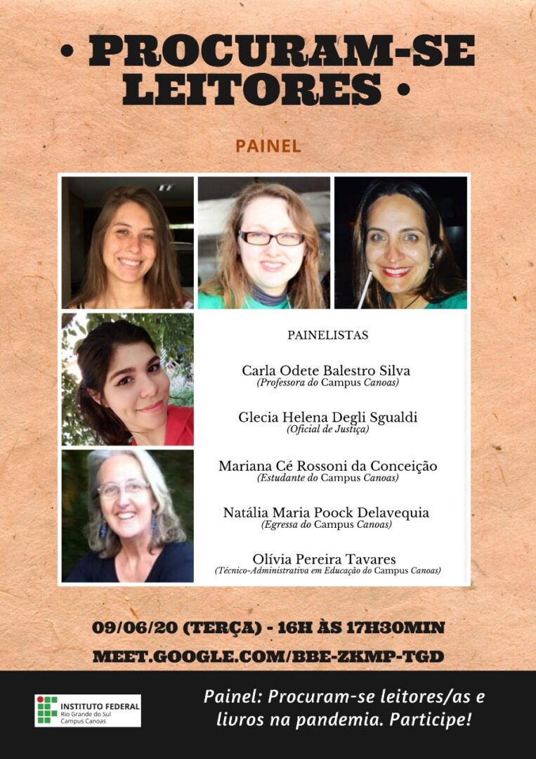 Na tarde da terça-feira, 09 de junho, a partir das 16h, a área de Letras do Campus Canoas realiza a atividade Procuram-se leitores e livros na pandemia.