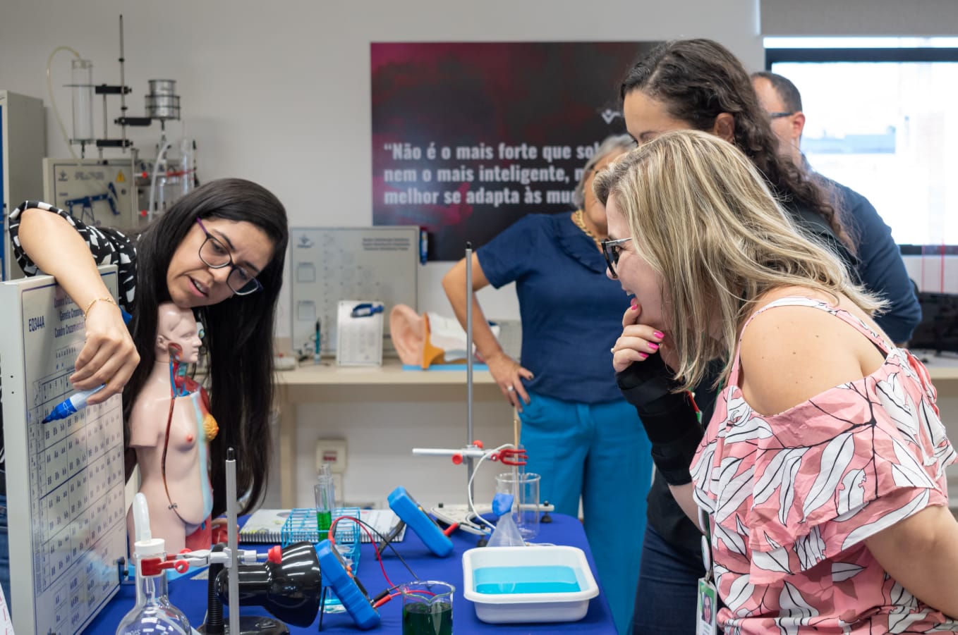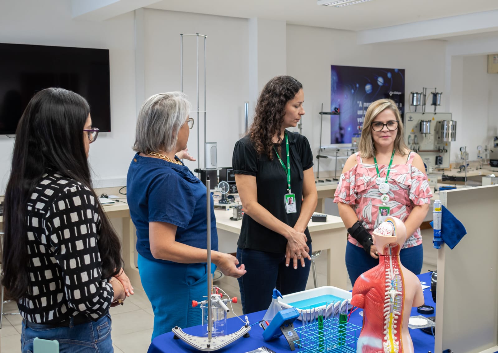 Nas fotos também estão Iara Meneghetti, consultora das regiões MG, PE, MA, AM, RN, PA, SP e PB, Alexandre Corrêa, consultor das regiões RS, RJ, ES, GO, DF, AP, RR, RO e BA e a coordenadora de Pesquisa, Pós-Graduação e Inovação do Campus Canoas, Profª Cimara Valim de Melo.