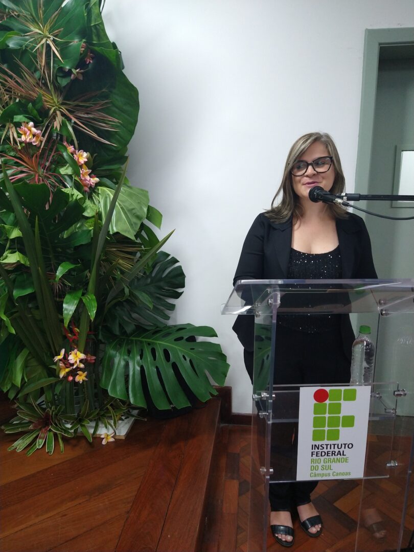 A composição da mesa de honra foi a seguinte: diretora-geral do Campus Canoas, Patrícia Hübler, a coordenadora do Curso Proeja, Jaqueline Russczyk e a paraninfa, Cleusa Albília de Almeida. Como cerimonialista, atuo o também coordenador de Registros Escolares, Marcelo Gonçalves.