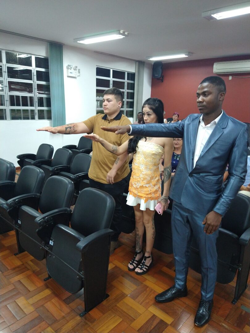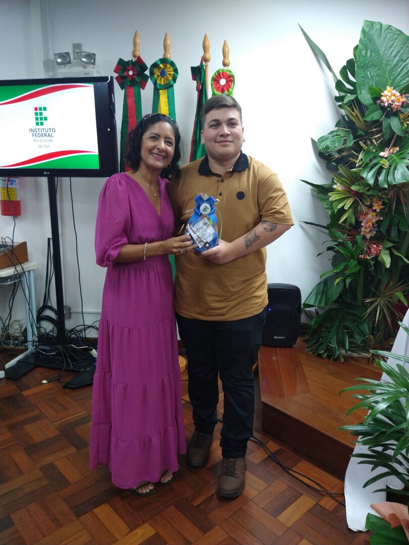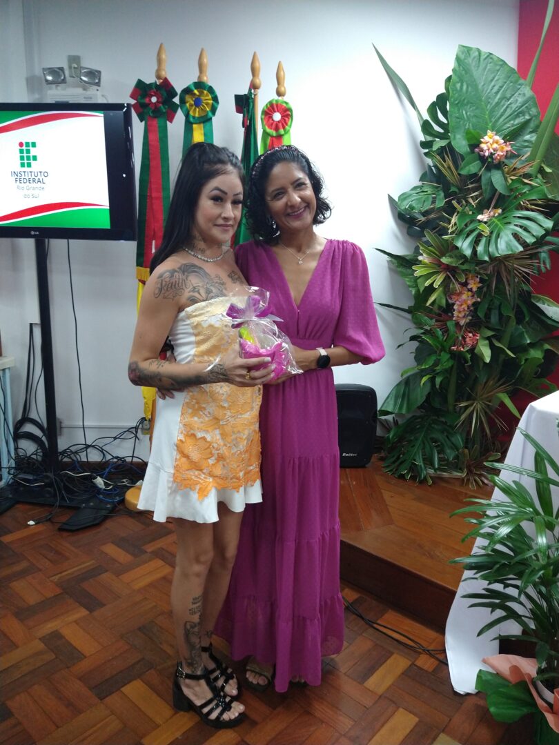 A composição da mesa de honra foi a seguinte: diretora-geral do Campus Canoas, Patrícia Hübler, a coordenadora do Curso Proeja, Jaqueline Russczyk e a paraninfa, Cleusa Albília de Almeida. Como cerimonialista, atuo o também coordenador de Registros Escolares, Marcelo Gonçalves.