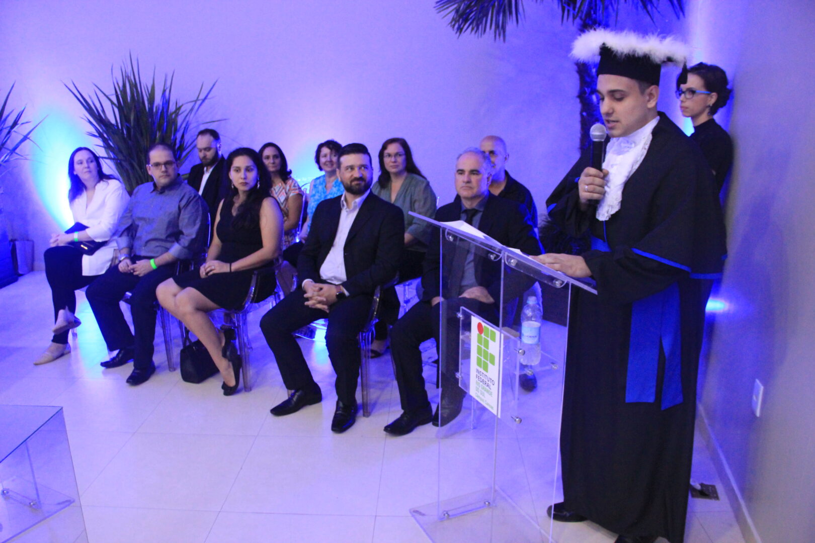 A ata de colação de grau foi lida pela representante da Coordenadoria de Registros Escolares, Nara Milbrath de Oliveira. Os estudantes Luis Fernando Marszalek Rocha e Camila Labres Nemos foram os juramentistas, representando os cursos superiores de tecnologia e a licenciatura, respectivamente.