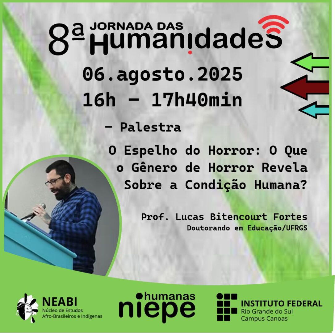 Palestra O Espelho do Horror: O Que o Gênero de Horror Revela Sobre a Condição Humana?, com o professor Lucas Bitencourt Fortes, doutorando em Educação na UFRGS