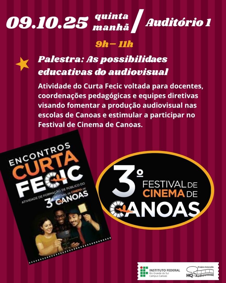 No terceiro dia, no turno da manhã, em uma parceria entre o IFRS, por meio do projeto de extensão HQ e Audiovisual em processos pedagógicos e a produção do 3º Festival de Cinema de Canoas, ocorreu uma atividade de formação de professores da rede municipal de Canoas, abordando o tema educação e audiovisual.