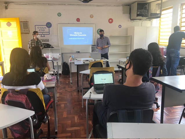 A caminho do final do ano, passando por outubro, novembro e dezembro, houve a realização de oficinas presenciais em todas as escolas parceiras. As atividades propostas tiveram como foco o ensino de empreendedorismo, finanças pessoais e programação. Foram excelentes momentos de troca entre projeto e os estudantes, os quais oportunizaram feedbacks em tempo real e uma boa interação entre todos. Finalizando o último trimestre de 2021, apresentou-se o projeto no salão do IFRS.