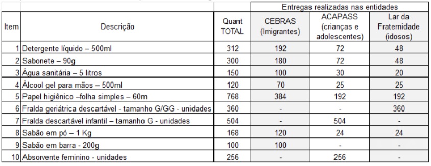 A meta é juntar recursos por meio de doações online para a compra de pelo menos 160 cestas básicas. A plataforma estará aberta para receber doações até terça-feira, dia 14 de julho. A entrega dos mantimentos às famílias deve ser feita ainda na segunda quinzena deste mês.