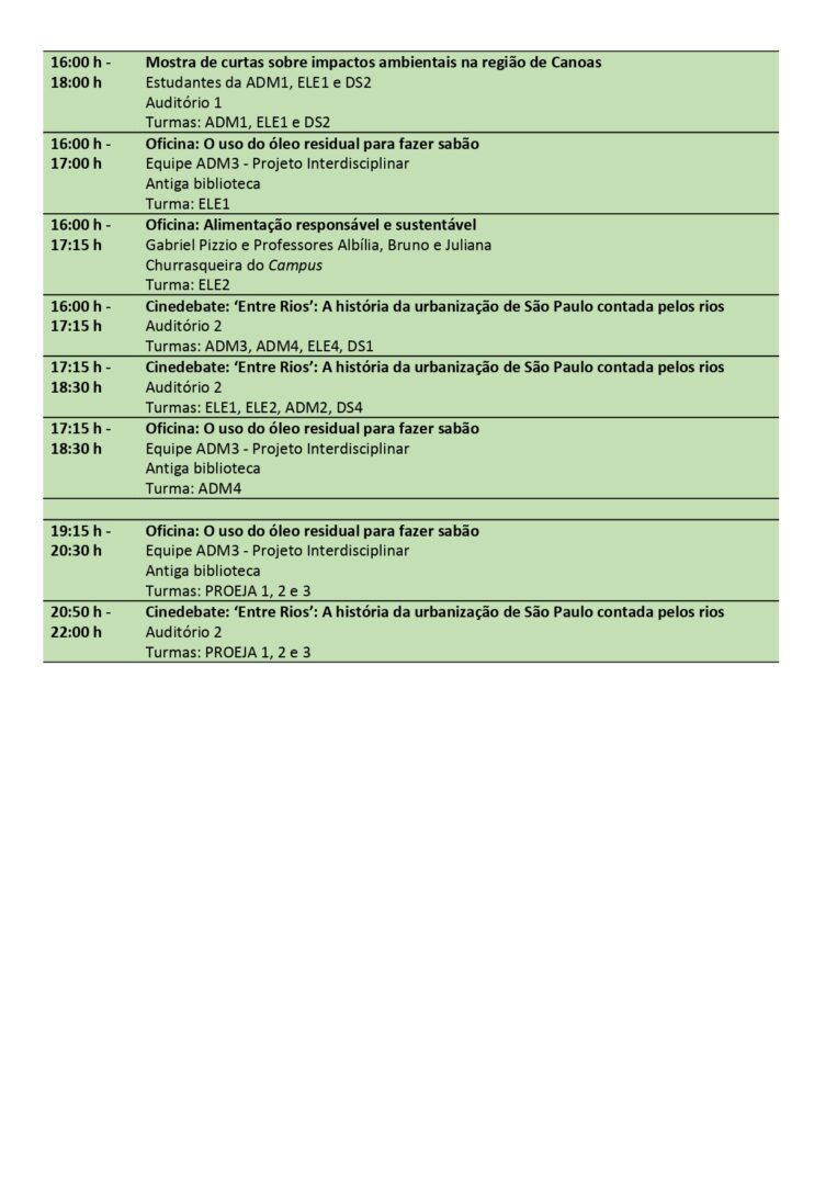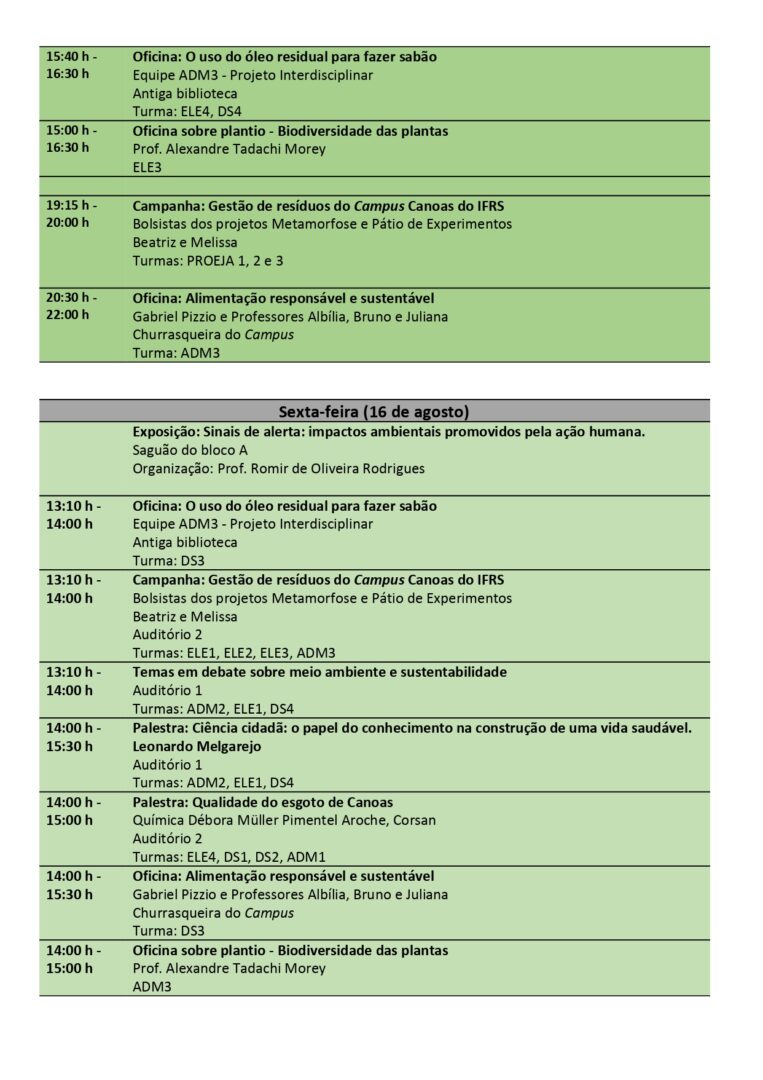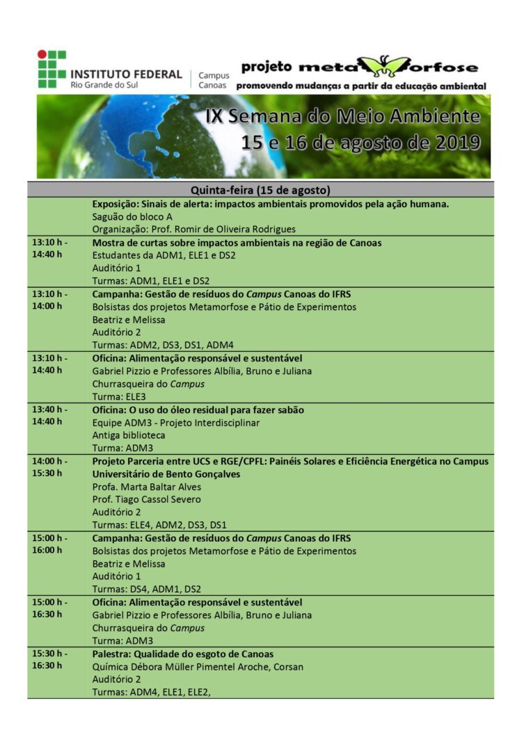 Neste ano de 2019, o Campus Canoas apresenta a IX edição da Semana do Meio Ambiente, que se realizará nos dias 15 e 16 de agosto.
