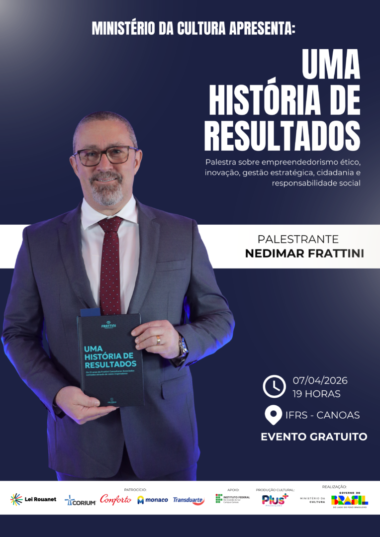 ⇔ 07 de abril, das 19h às 20h40min: Uma história de resultados, proferida por Nedimar Frattini.