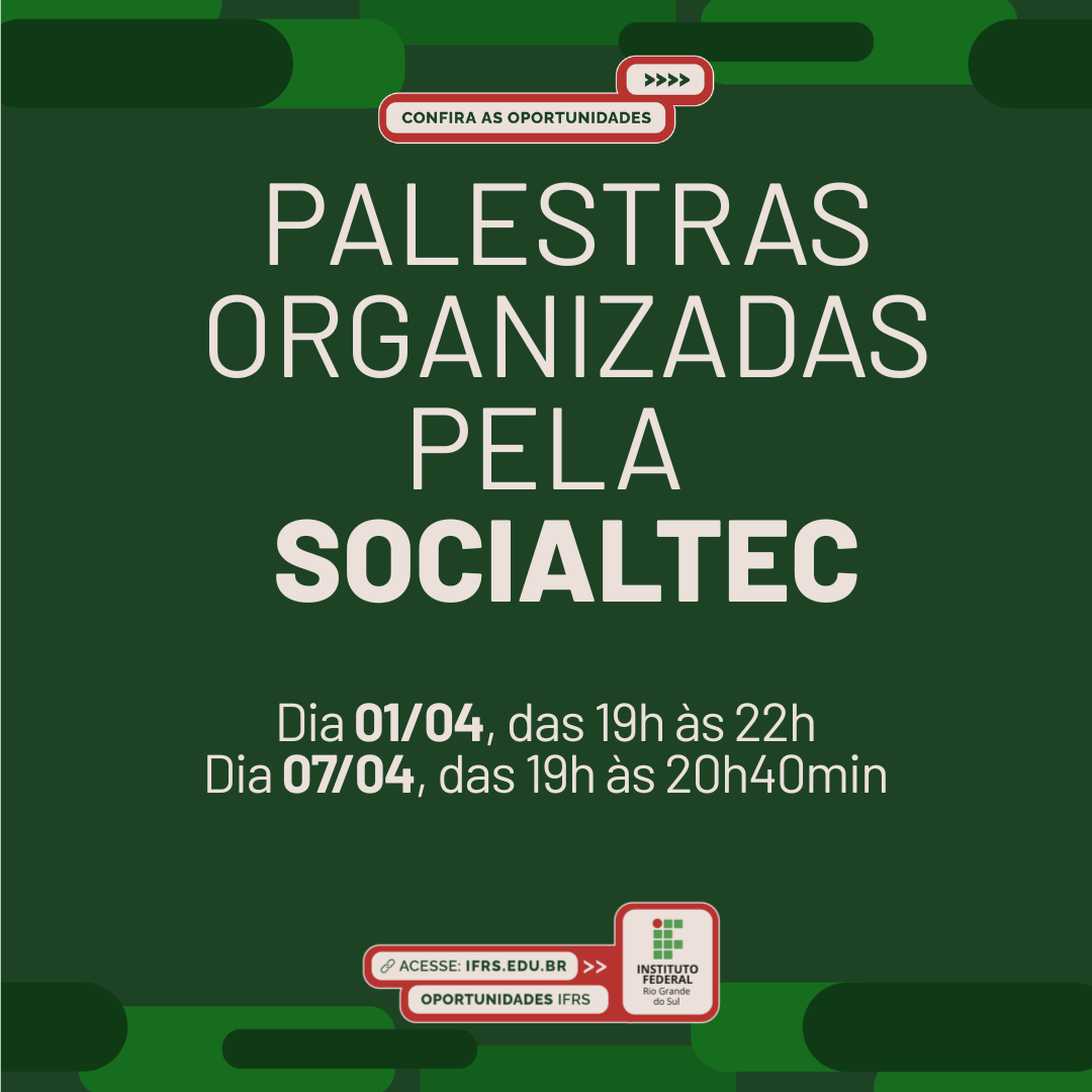Informações adicionais podem ser obtidas no perfil do Instagram @socialtec_ifrs.