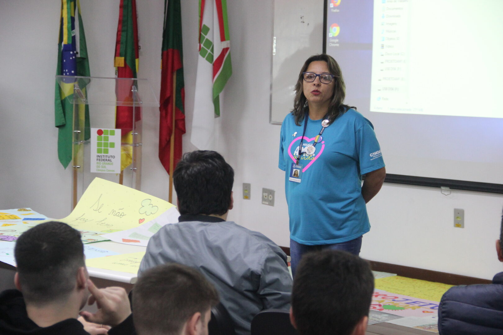 14h – Palestra “Projeto Amor à Vida: uma alternativa possível na prevenção do suicídio na infância e adolescência” com Joelma Teresinha Gomes (foto ao lado), pedagoga da Secretaria Municipal de Educação de Canoas- Outras atividades foram desenvolvidas em parceria com o projeto Roda Leitura (professora Albilia) e a Oficina de Desenho (professora Juliana).