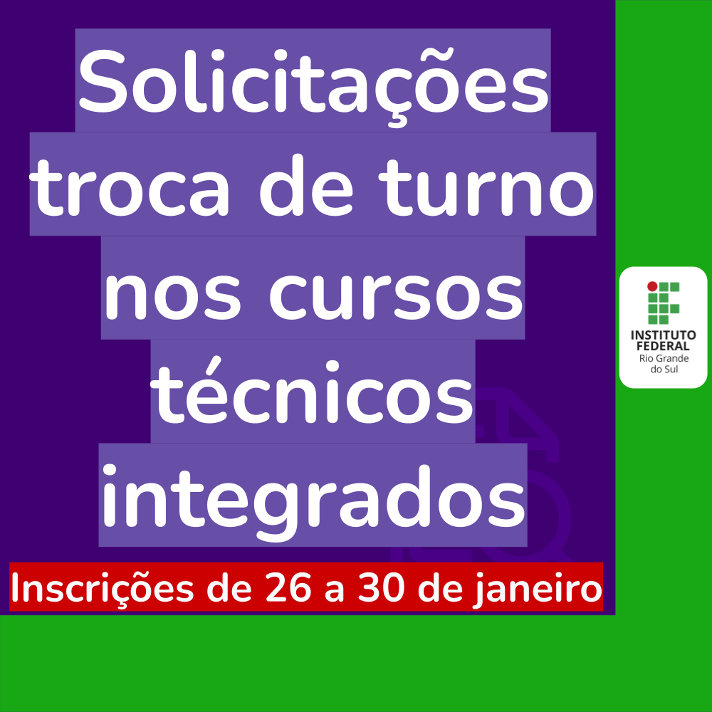 Solicitações para troca de turno nos cursos técnicos integrados ao ensino médio ocorrem de 26 a 30 de janeiro