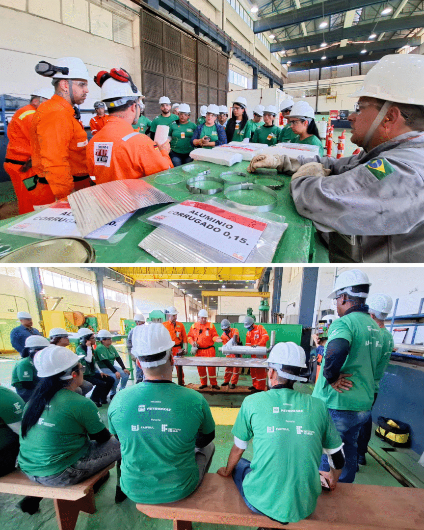 A turma de Isolador de Tubulações participou de uma aula técnica e visita à área operacional da Refinaria Alberto Pasqualini (Refap), da Petrobras, no dia 24 de outubro. O grupo observou a montagem completa de uma tubulação; recebeu informações a respeito de normas técnicas; aprendeu mais sobre o uso correto dos equipamentos de proteção individual (EPIs), ferramentas e máquinas para cada função. Eles foram recebidos pelo supervisor de Equipamentos Estáticos da Refap, Jonas Teixeira Ramgrab, e por profissionais ligados às empresas terceirizadas RTT e Engemon.