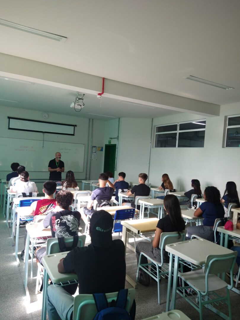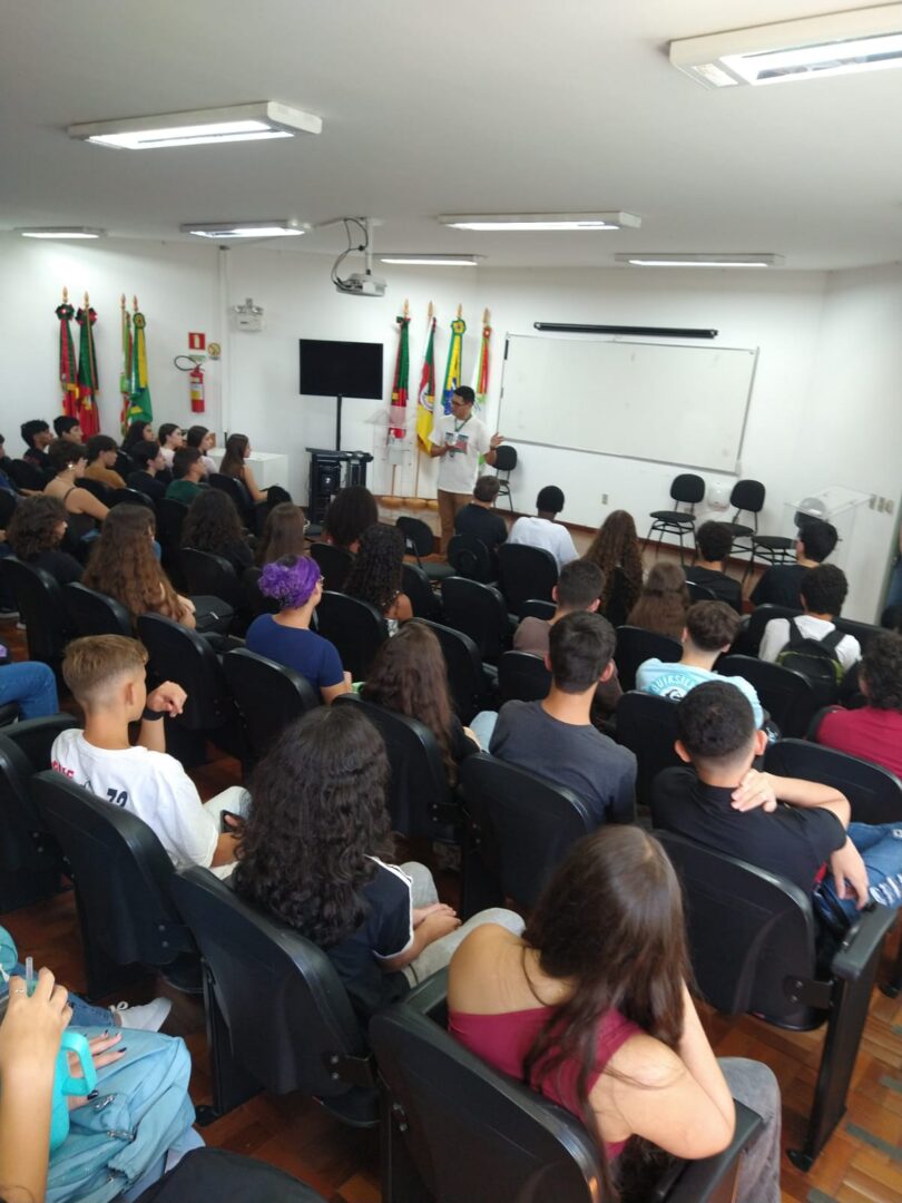 À tarde, em virtude da maior concentração de discentes, os alunos novos foram recepcionados no mini auditório 02 e souberam um pouco a respeito do funcionamento do Instituto Federal e depois dirigiram-se às suas salas de aula.