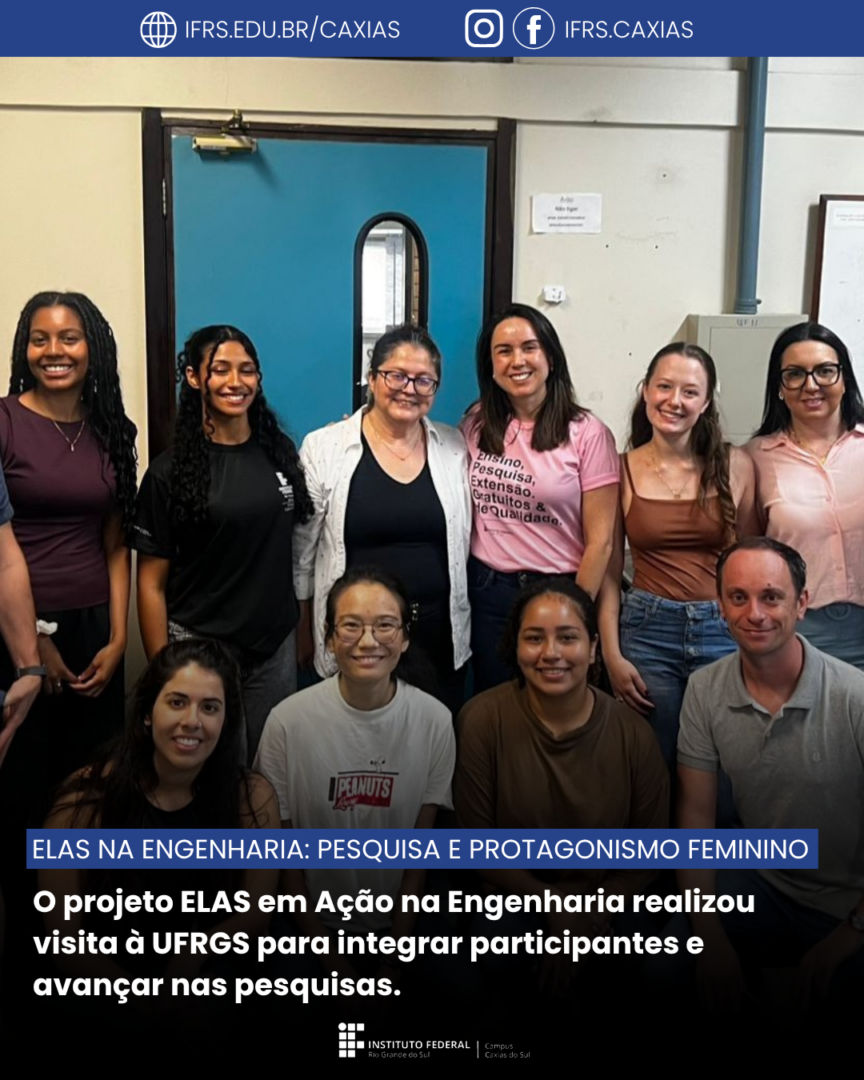 O projeto ELAS em Ação na Engenharia, desenvolvido por meio de uma parceria entre o Instituto Federal do Rio Grande do Sul (IFRS) – Campus Caxias do Sul, a Universidade Federal do Rio Grande do Sul (UFRGS) e escolas públicas municipais, segue fortalecendo ações voltadas à inserção de meninas nas áreas da engenharia. A iniciativa conta com financiamento do edital…