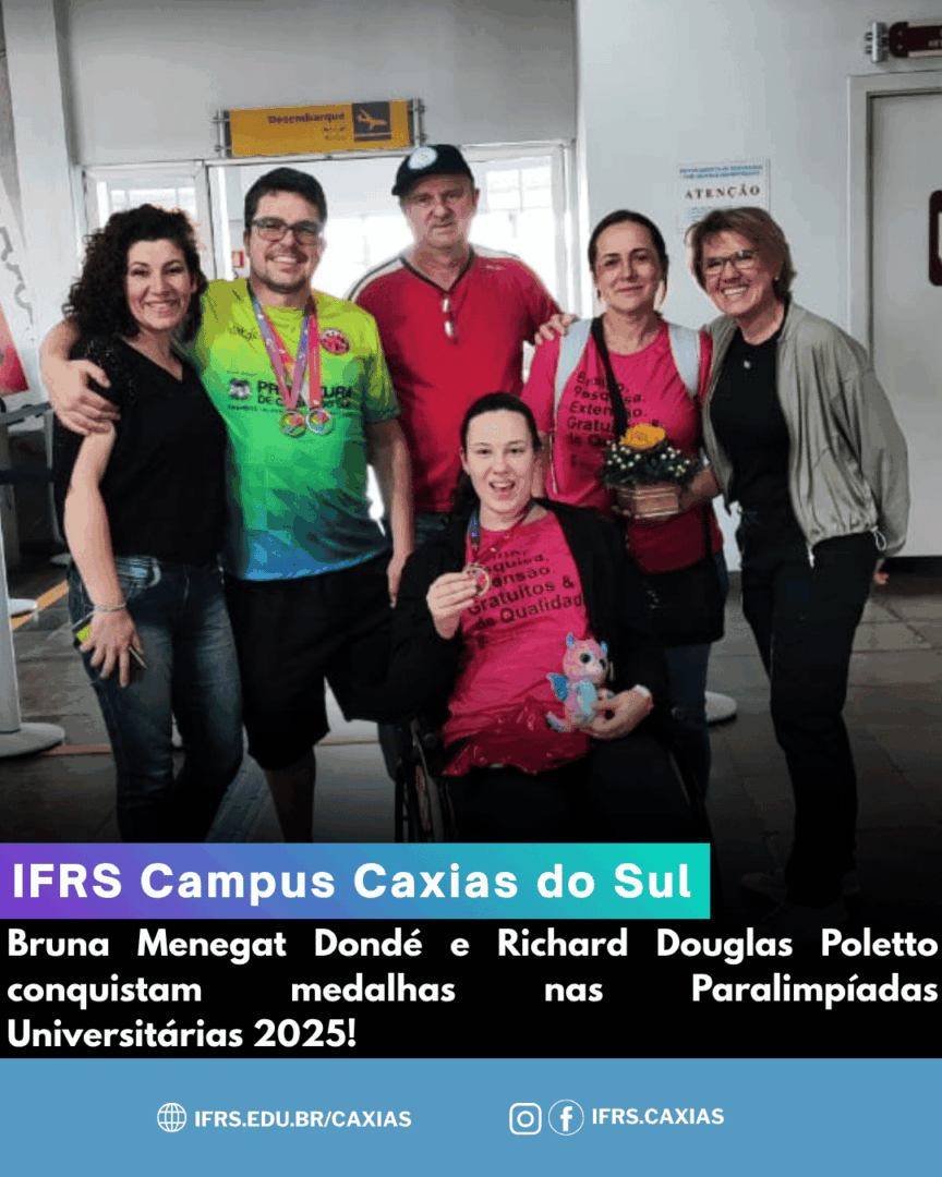 O IFRS – Campus Caxias do Sul parabeniza os atletas pelas conquistas e agradece aos parceiros do projeto, à Assistência Estudantil, à Gestão do Campus, bem como aos familiares e apoiadores, que contribuíram para o sucesso da participação nas competições.