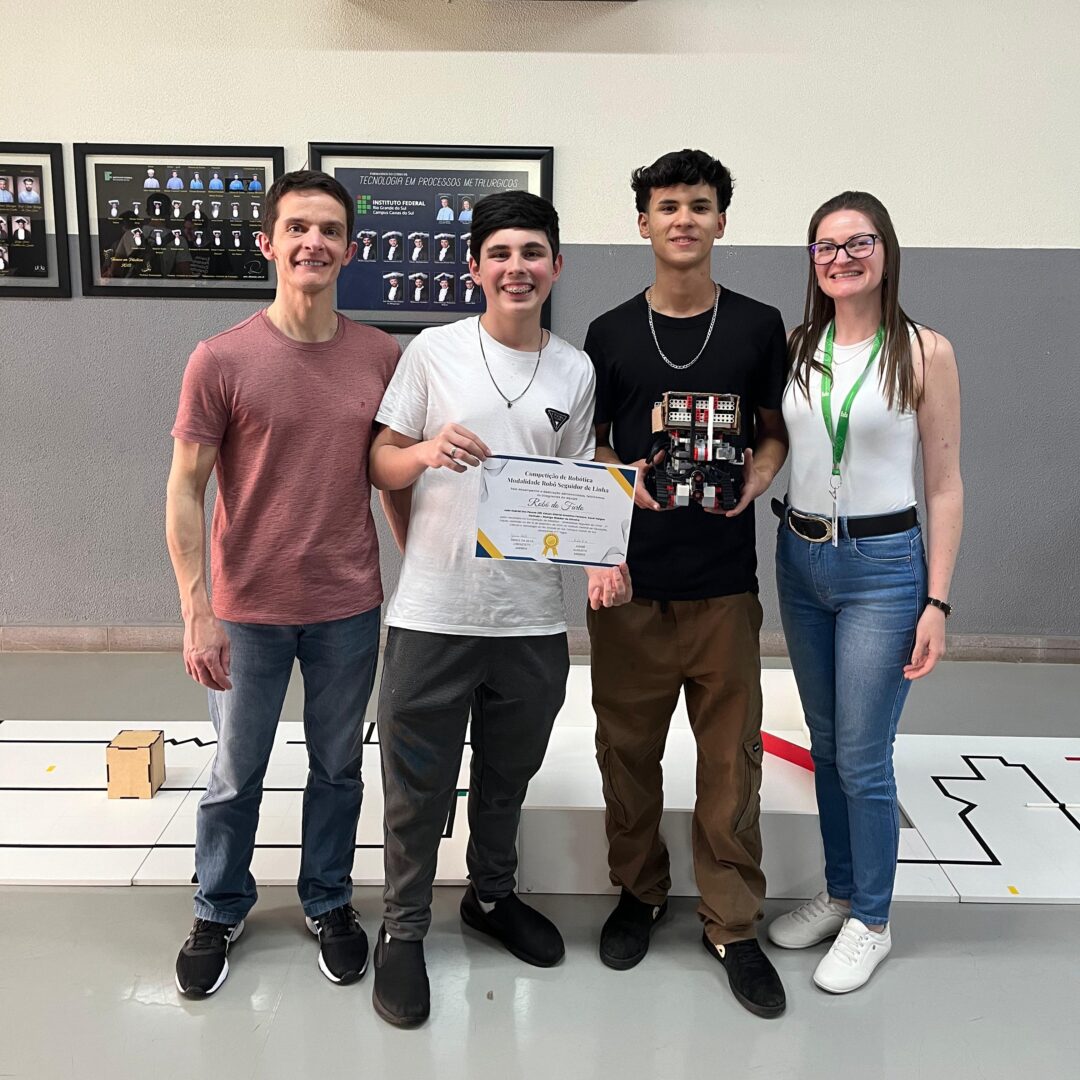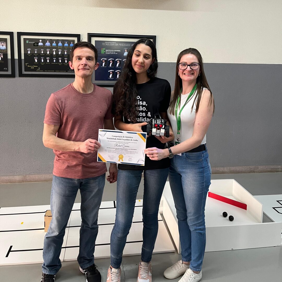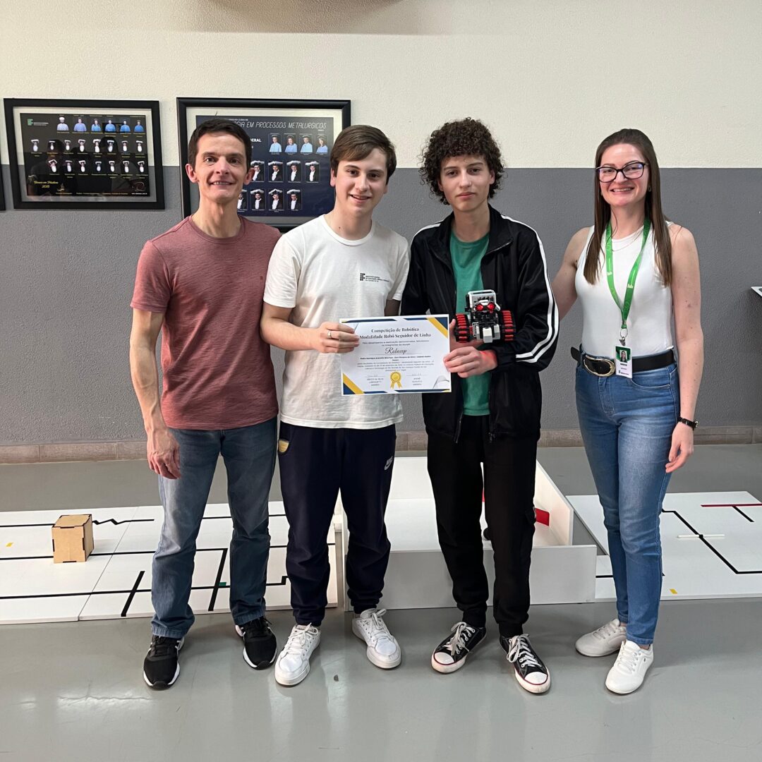 No dia 10 de setembro de 2024, ocorreu a Competição de Robótica – Modalidade Robô Seguidor de Linha, em sua segunda edição. A prova foi realizada no Saguão do Bloco D do Campus Caxias do Sul, em frente ao RoboLab Caxias. A ação, vinculada ao projeto de ensino “Desenvolvimento de habilidades e competências STEAM por meio da construção e da programação de robôs”, do projeto indissociável “Produção e difusão de conhecimentos na área da Robótica” e do projeto para implementação e estruturação de habitats de inovação “Habitat de Inovação RoboLab: promovendo a Robótica e a Cultura Maker”, contou com a presença do diretor geral, Prof. Jeferson Luiz Fachinetto, além de estudantes e servidores que prestigiaram o evento. Os projetos executados e as atividades realizadas foram desenvolvidas sob coordenação da professora Greice da Silva Lorenzzetti Andreis e do professor André Augusto Andreis, em parceria com os técnicos de laboratório Bruno Bueno e Eduarda Michelle Malinowski Herzog.