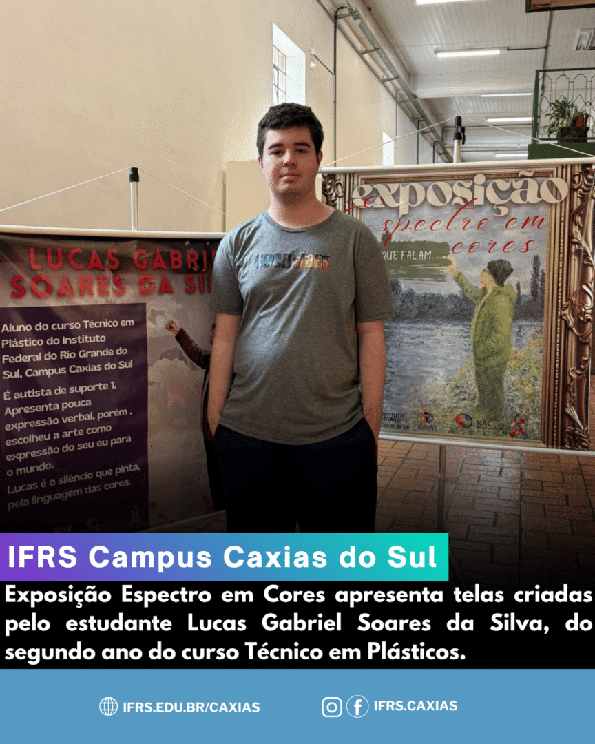 No dia 25 de outubro, ocorreu no Centro de Cultura Dr. Henrique Ordovás Filho, na cidade de Caxias do Sul -RS, a Exposição Espectro em Cores. O evento que reúne obras de arte pintadas em tela, pelo estudante Lucas Gabriel Soares da Silva, segundo ano do curso técnico em plástico. O Lucas é autista de suporte 1, de pouca expressão verbal, porém, escolheu a arte como expressão do seu eu para o mundo.