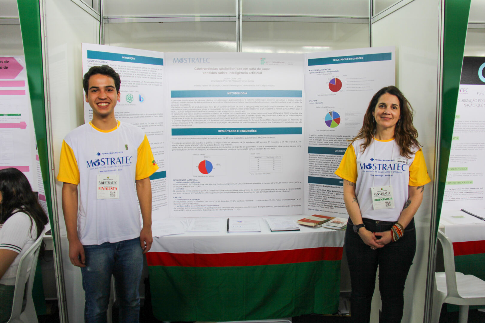 O estudante do quarto ano do curso técnico em Multimídia integrado ao ensino médio Vicenti Ciotta Lima, do IFRS Campus Vacaria, conta que é a primeira vez que apresenta o projeto em uma feira de nível internacional. Ele explica que despertou para a pesquisa a partir da disciplina “Projeto de Formação e Integração”. “É uma matéria que tem todos os anos com o objetivo de fazer projetos de pesquisa, então é justamente nesse momento que a gente pode pesquisar sobre o que quiser. Comecei a me interessar em razão dessa disciplina. Iniciei pesquisando sobre redes sociais e neste ano sou bolsista com o projeto ‘Controvérsias sociotécnicas em sala de aula: sentidos sobre inteligência artificial’, orientado pela professora Raquel Folmer Corrêa”.