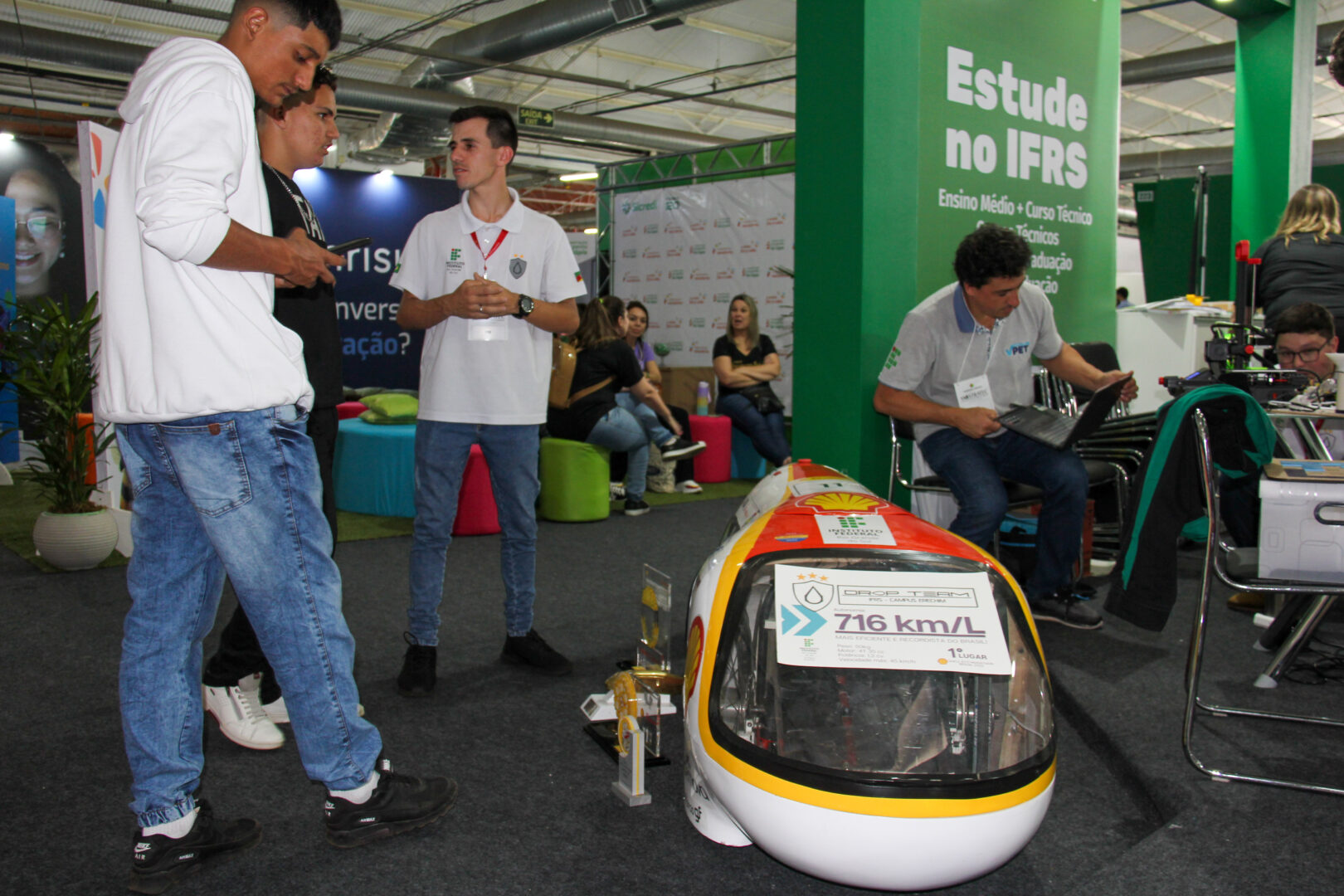 No local as pessoas conheceram diferentes projetos do IFRS, experimentando na prática, observando e recebendo explicações sobre o funcionamento de cada um deles. Sucesso com o público de todas as idades, o protótipo automotivo da equipe “Drop Team”, do Campus Erechim, atraiu a curiosidade de quem passava pelo local. Os bolsistas do projeto, Felipe Salini e Jonas Sachet, esclareceram dúvidas e contaram sobre o tricampeão de eficiência energética.