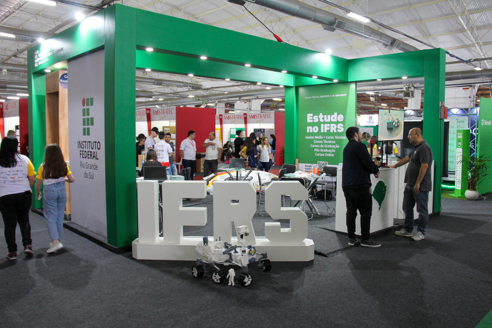 Pela primeira vez com um estande na Mostra Internacional de Ciência e Tecnologia (Mostratec), o Instituto Federal de Educação, Ciência e Tecnologia (IFRS) divulgou os cursos e apresentou projetos que chamaram a atenção dos visitantes do evento. A Mostratec ocorreu na Fenac, em Novo Hamburgo, e esteve aberta ao público de 24 a 26 de outubro de 2023. Além do espaço, mais uma vez estudantes da instituição tiveram projetos finalistas: foram 12 trabalhos dos campi Bento Gonçalves, Feliz, Osório, Rolante e Vacaria nesta 38ª edição da mostra. O IFRS teve também um projeto expondo como startup, o Revisão Online, do Campus Canoas.