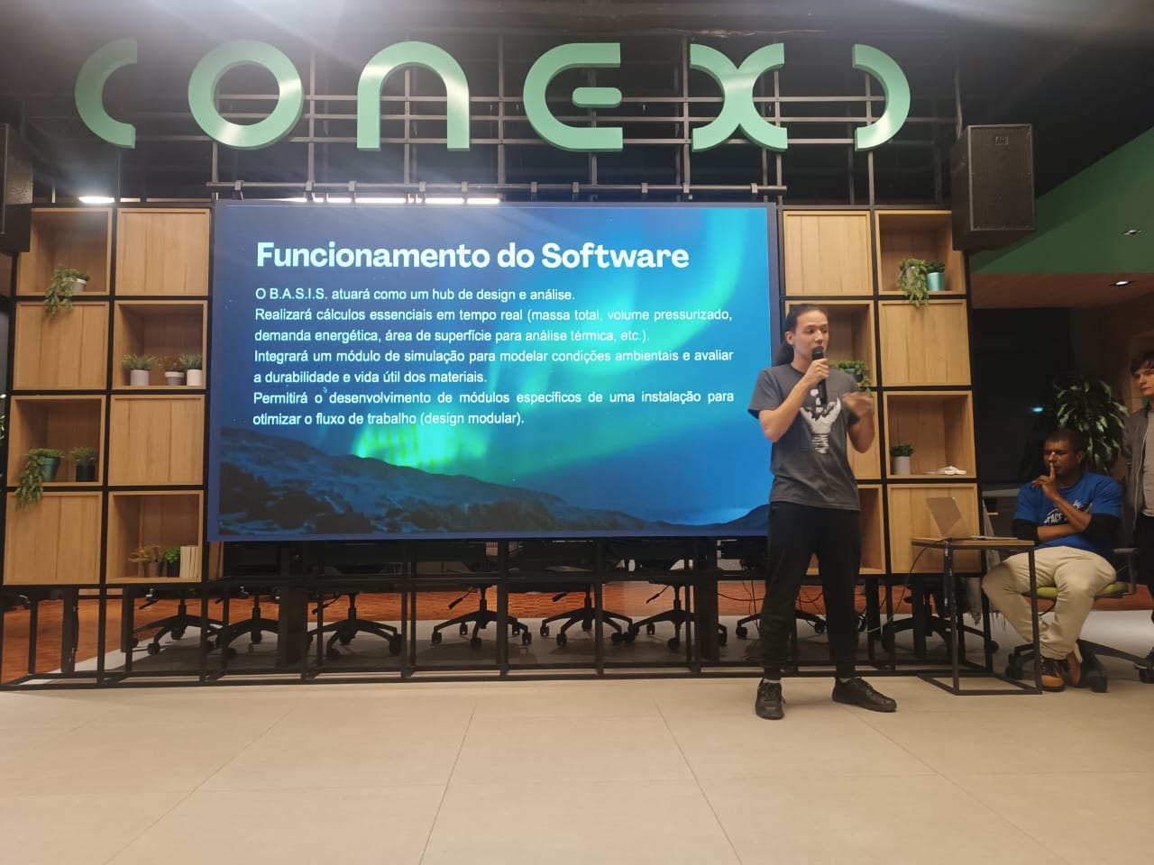 Apresentação do projeto da equipe B.A.S.I.S., que propôs a construção de um software para simulação de habitats espaciais.