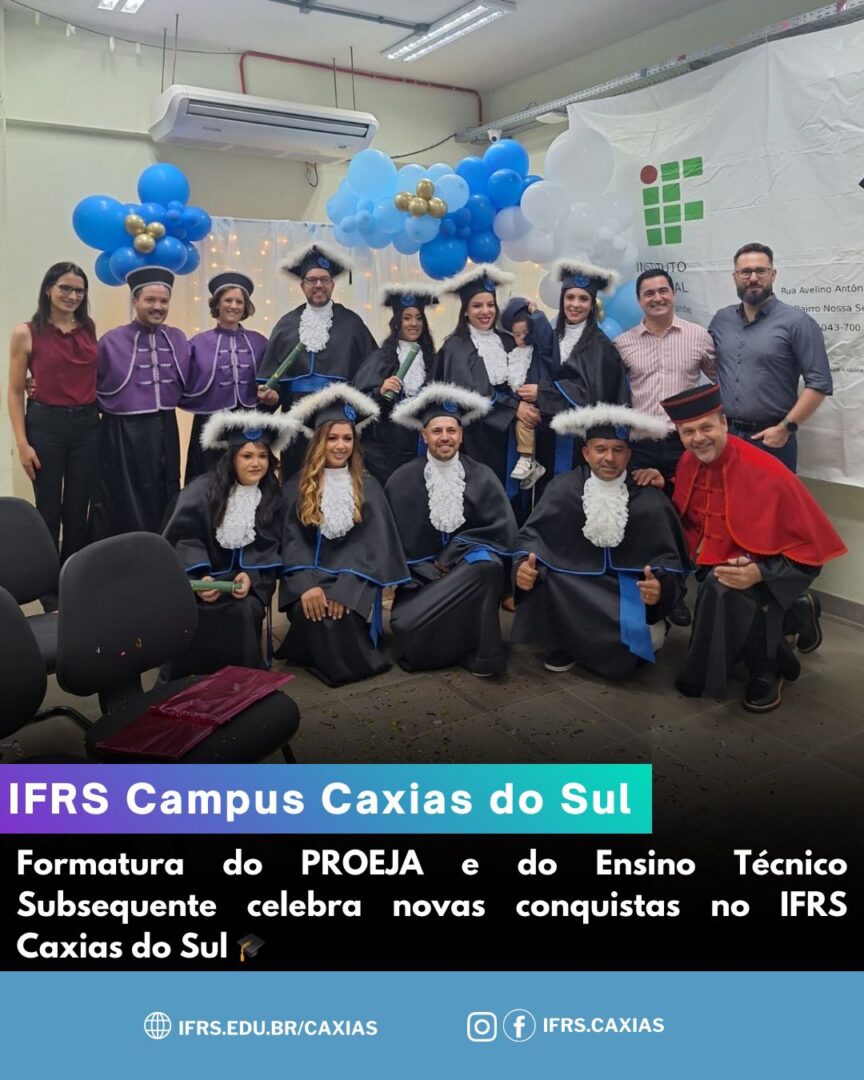O IFRS Campus Caxias do Sul parabeniza todos os formandos do Técnico em Administração – PROEJA e Técnico em Plásticos Subsequente 2025, desejando sucesso nos próximos passos e reafirmando seu compromisso com uma educação pública, gratuita e de qualidade.