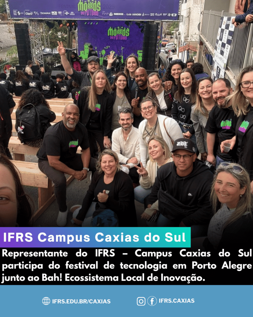 O Instituto Federal do Rio Grande do Sul (IFRS) – Campus Caxias do Sul participou, no dia 31 de outubro, do Festival Morros do Futuro, realizado no Morro da Cruz, em Porto Alegre. O evento tem como objetivo conectar inovação, tecnologia e transformação social em comunidades da capital, especialmente nos territórios periféricos. Promovido pelo Formô Hub — o primeiro hub…