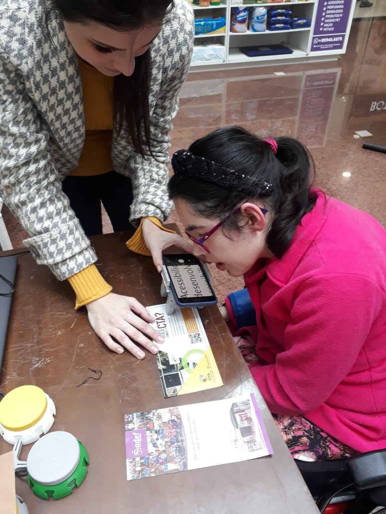 Na oportunidade, foram expostos recursos de tecnologia assistiva confeccionados pelo CTA e realizada demonstrações e experimentações com o público. As atividades ocorreram no Shopping Bento.