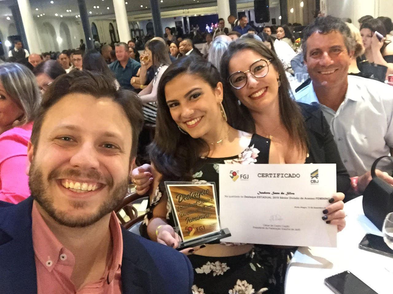 Na sexta-feira, 13 de dezembro de 2019, a FGJ entregou um troféu ao responsável técnico pela equipe, professor Felipe Parisoto, do Campus Osório, durante evento realizado em Porto Alegre. Na ocasião, também houve homenagem a três judocas do IFRS, que conquistaram o título de atleta destaque do ano: Isadora Sana da Silva (1° lugar, Sênior Feminino, Divisão de Acesso – na foto em destaque), Matheus Renan Machado (1° lugar, Sênior Masculino, Divisão de Acesso) e Thiago da Silva Ferreira (Destaque Metropolitano, Sênior Masculino, Divisão de Acesso).