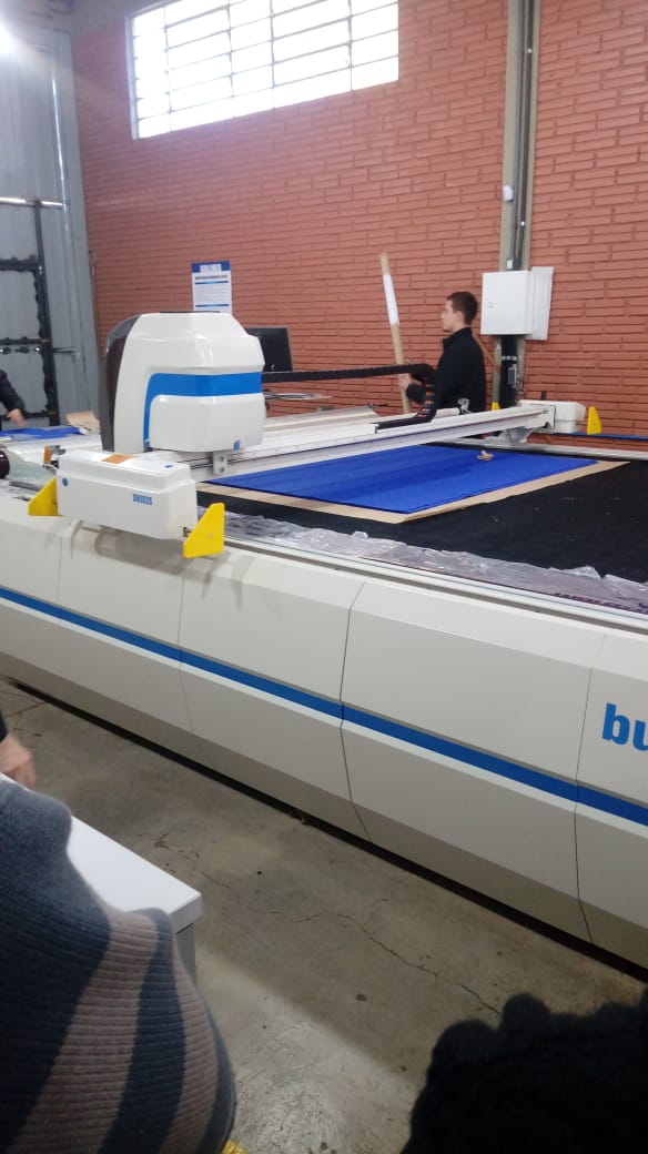 Os estudantes puderam conhecer a instalação onde foram apresentados a instrumentos como a máquina de corte eletrônica, uma enfestadeira eletrônica, sistema de modelagem, encaixe e ploter.