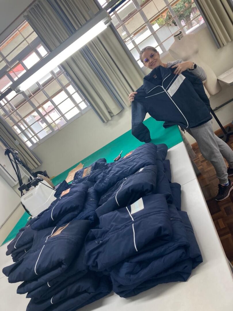 Para produção de cobertas, o campus recebeu os tecidos dos Amigos Voluntários de Erechim (AVE) para confecção de 100 unidades e do Sindicato Nacional dos Servidores Federais da Educação Básica, Profissional e Tecnológica (Sinasefe) para 18 unidades. No total foram 118 agasalhos produzidos pelos alunos dos cursos de tecnologia em Design e Moda e técnico em Modelagem do Vestuário, que atuaram de forma voluntária. Também participaram da produção, voluntariamente, servidores da unidade. Eles realizaram ainda ajustes e consertos de jaquetas, em parceria com a Secretaria de Assistência do município, e confeccionaram 60 pijamas infantis em conjunto com uma loja de Erechim.