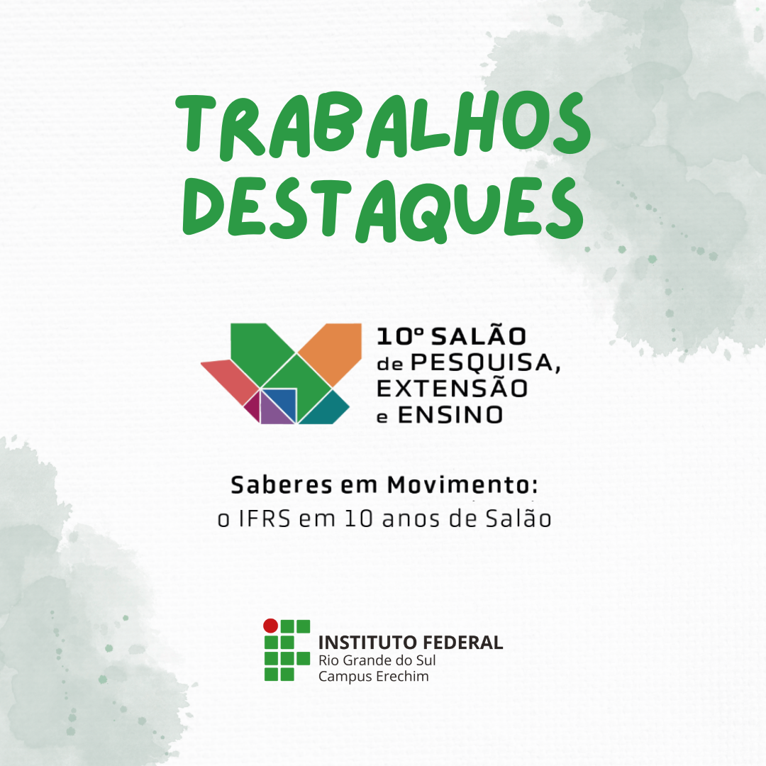 Estão publicados os Destaques do 10º Salão de Pesquisa, Extensão e Ensino do Instituto Federal de Educação, Ciência e Tecnologia do Rio Grande do Sul.