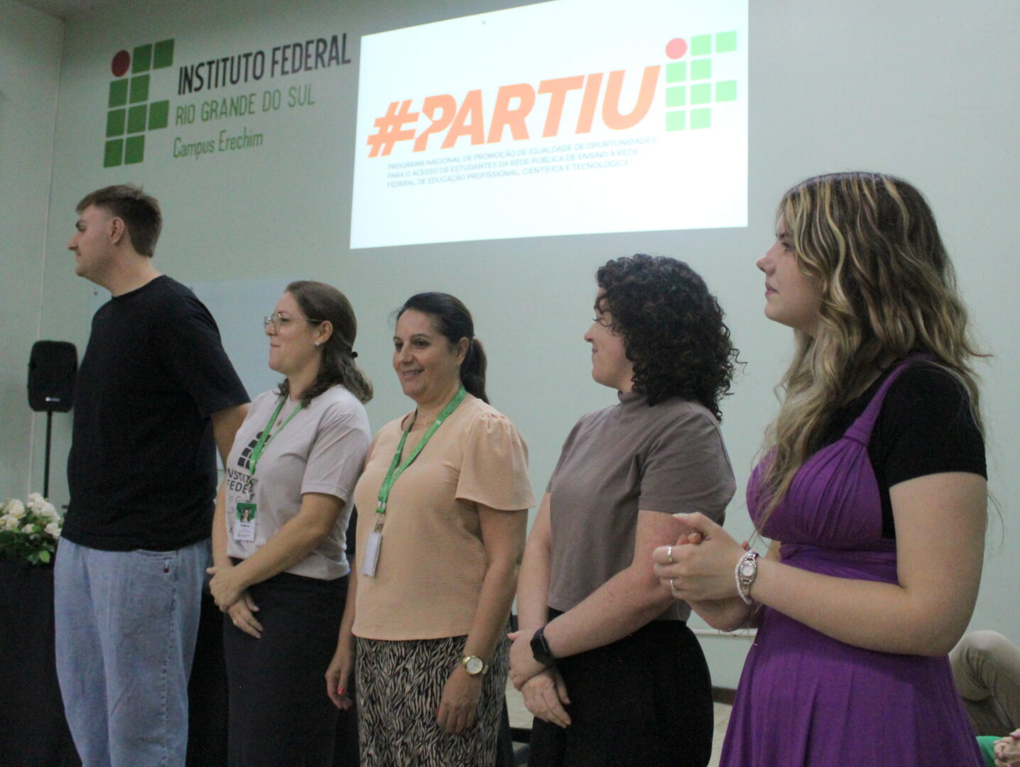 A programação incluiu ainda a exibição de um vídeo produzido por monitores do programa em 2025, que retratou experiências e vivências dos estudantes ao longo da jornada no Partiu. Na sequência, a estudante Camile Rodrigues dos Santos compartilhou seu depoimento, destacando o impacto positivo do programa em sua trajetória escolar. Camile participou do programa no ano passado, foi aprovada no processo seletivo e, neste ano, ingressou no Instituto como estudante do curso técnico integrado ao Ensino Médio de Design Gráfico.