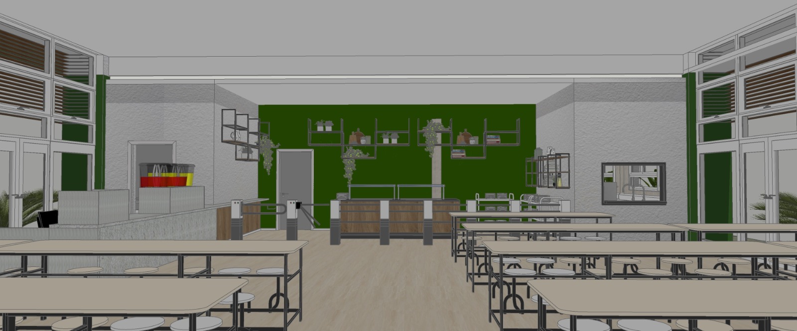 Terá ainda espaço para cantina; local de convivência, que poderá ser utilizado pelos alunos que quiserem trazer alimento, aquecer e fazer a refeição; e banheiros, entre eles um família, com trocador de bebê. Haverá um sistema para aproveitamento de água da chuva para uso nos sanitários e aberturas que permitam a ventilação cruzada, garantindo arejamento aos ambientes.