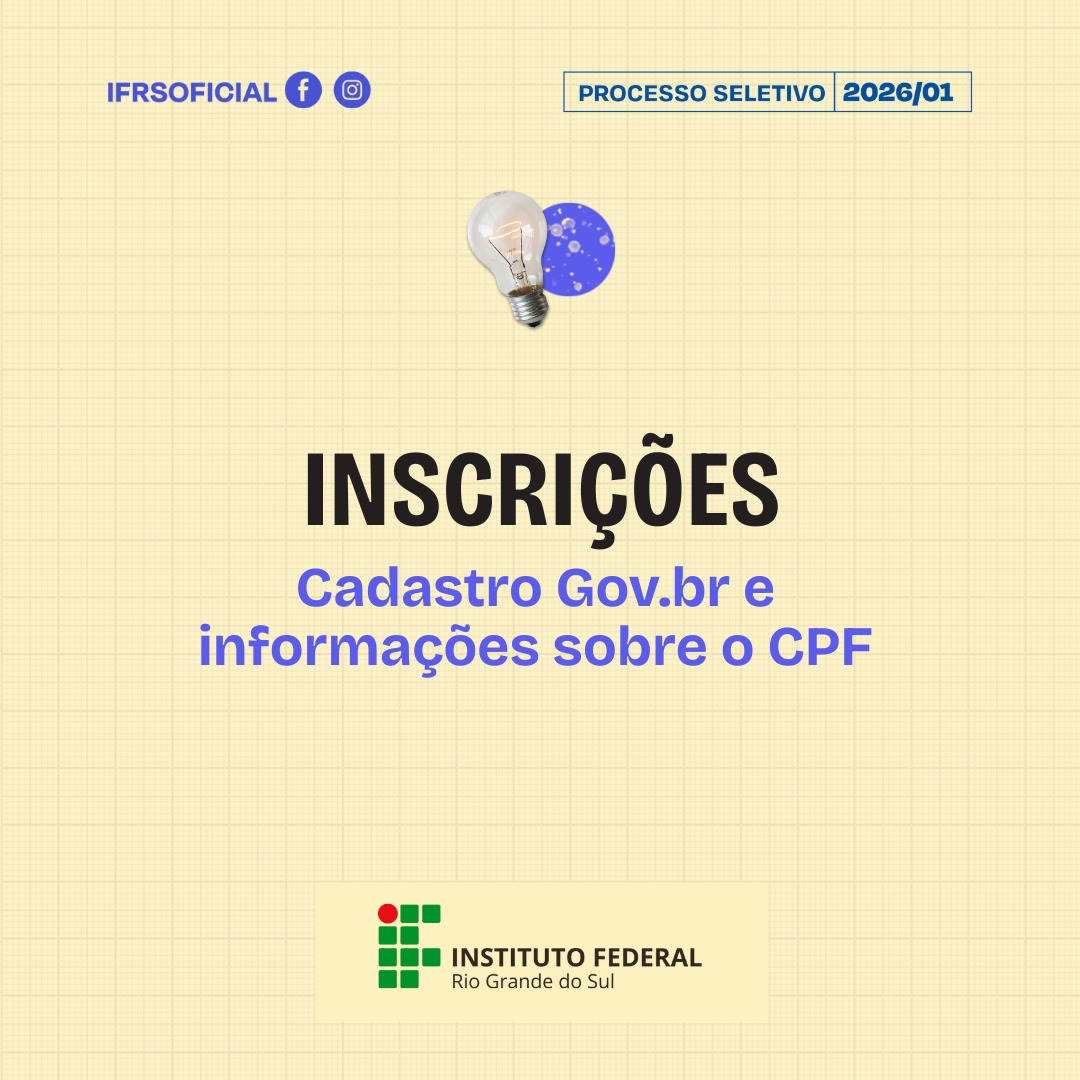 Confira como fazer o cadastro no gov.br e informações sobre o CPF para inscrição no Processo Seletivo IFRS 2026/01