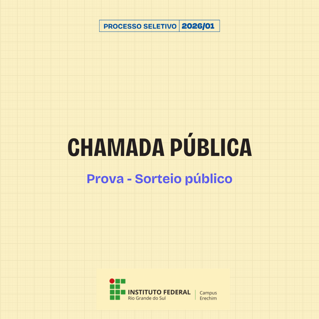 Foi publicada nesta sexta-feira, 23 de janeiro de 2026, a chamada pública dos candidatos do Processo Seletivo 2026/01 do Instituto Federal de Educação, Ciência e Tecnologia do Rio Grande do Sul (IFRS) que optaram pela seleção por sorteio ou por prova.