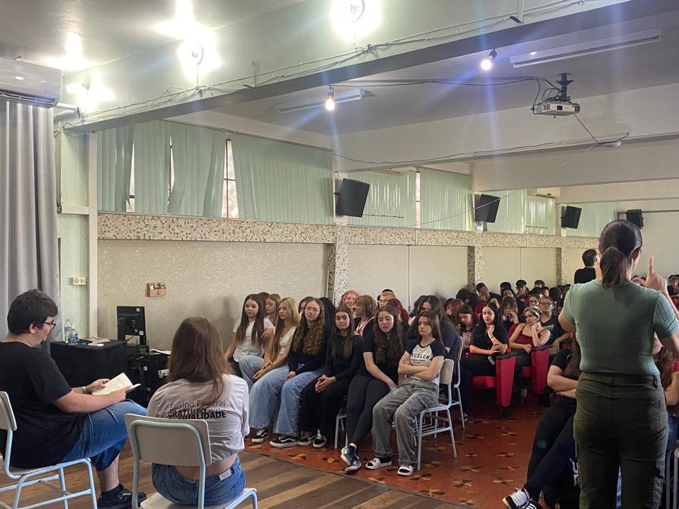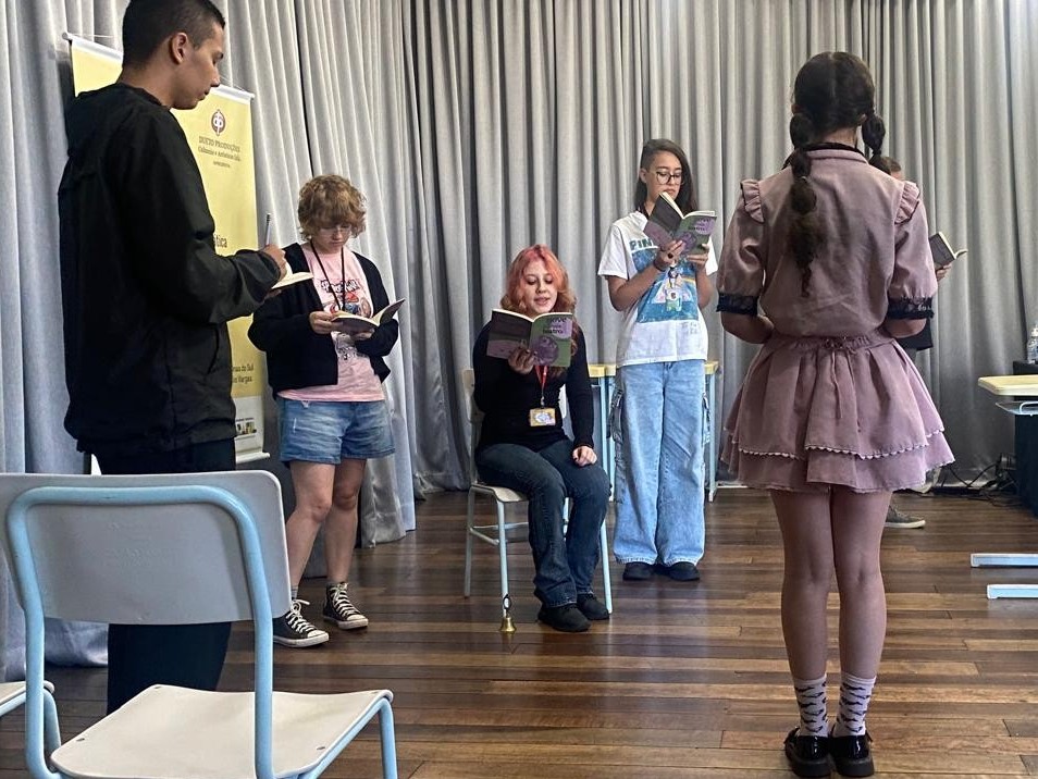 A programação incluiu oficinas de leitura dramática, práticas de teatro a partir das obras estudadas e uma apresentação final aberta à comunidade escolar. As ações fazem parte do Projeto de Ensino “Clube de Leitura: práticas formadoras de leitores”, coordenado pela professora Noemi Luciane dos Santos, com colaboração da professora Luciane Schiffl Farina, docentes da área de Letras.