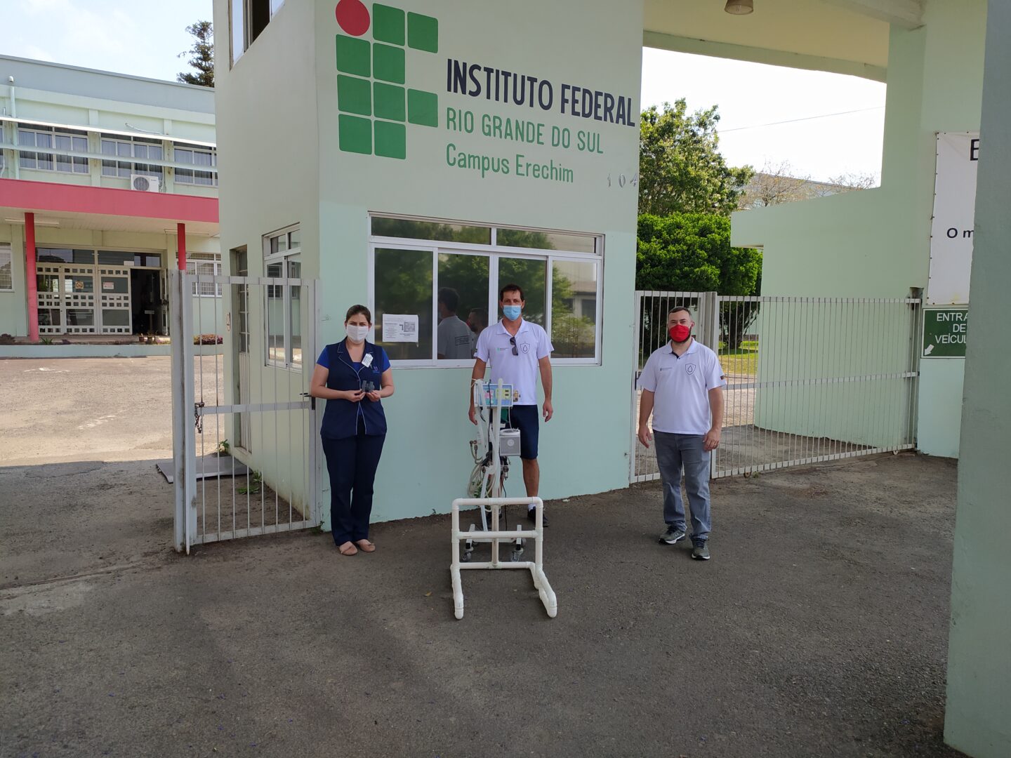 Empenhado em minimizar problemas causados pela Covid-19 e em auxiliar unidades de saúde, o IFRS campus Erechim nesta segunda-feira dia 05 de outubro de 2020, realizou a entrega de mais um respirador ao Hospital Santa Terezinha. O mesmo voltou a funcionar após manutenção recebida pelos professores Airton Campanhola Bortoluzzi, Alisson Dalsasso Corrêa de Souza e José Antonio Sala, da área de Mecânica do Campus Erechim. Ao todo foram dois respiradores que receberam manutenção até o momento.